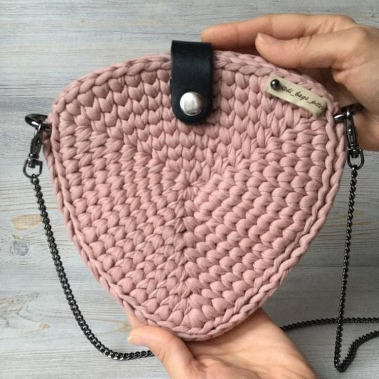Для вязания такой сумочки использовалась трикотажная пряжа hobyt, ткань для подкладки, кожаный клапан и фурнитура «чёрный никель». Вместе с фото прикладываем схему