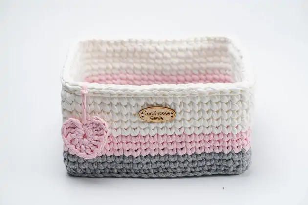 Квадратные корзинки, сумки с квадратным дном, сидушки на стул, коврики — разбираем, как связать квадрат из трикотажной пряжи