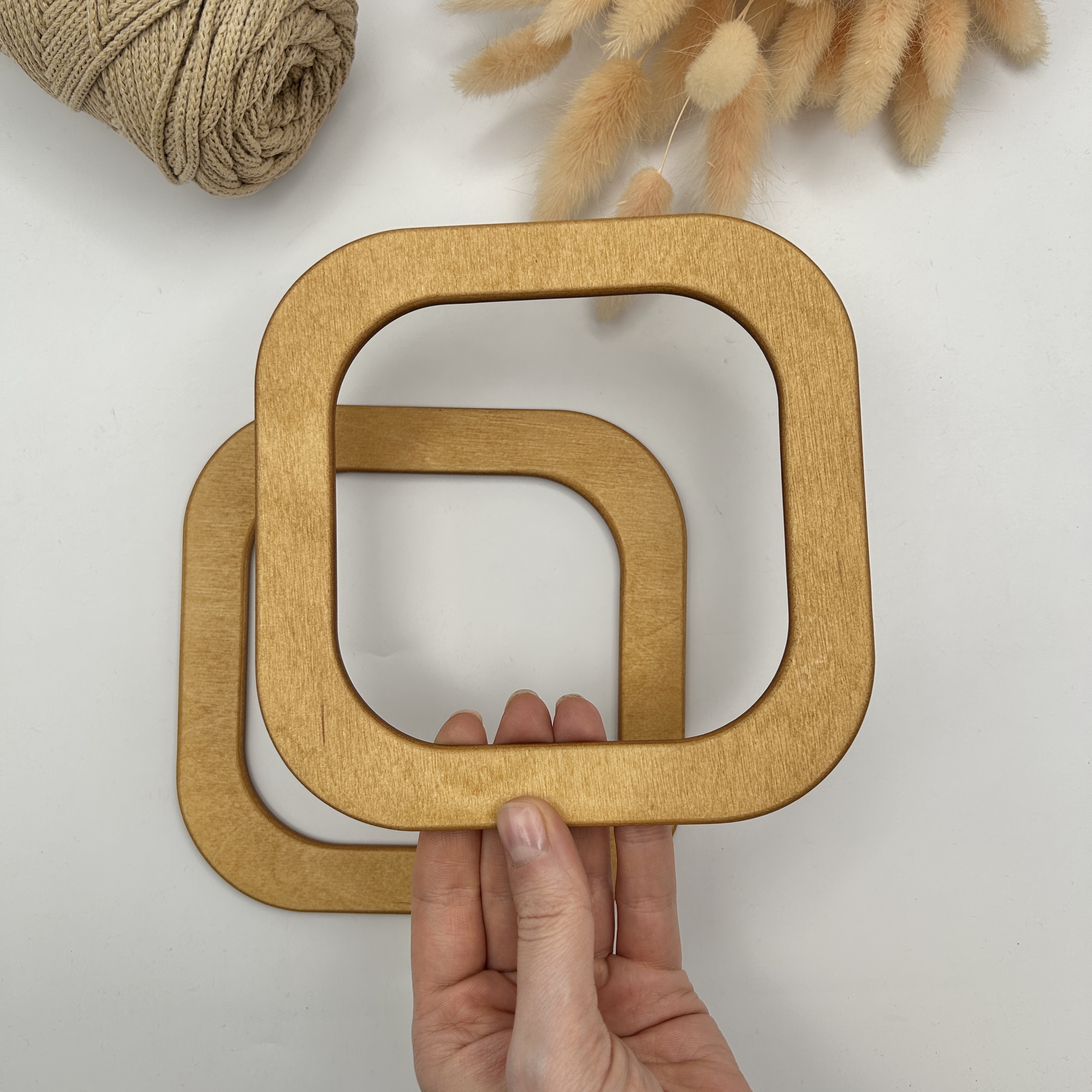 Деревянные ручки для сумки РД-20, квадратные 15х15 см, цвет ОРЕХ