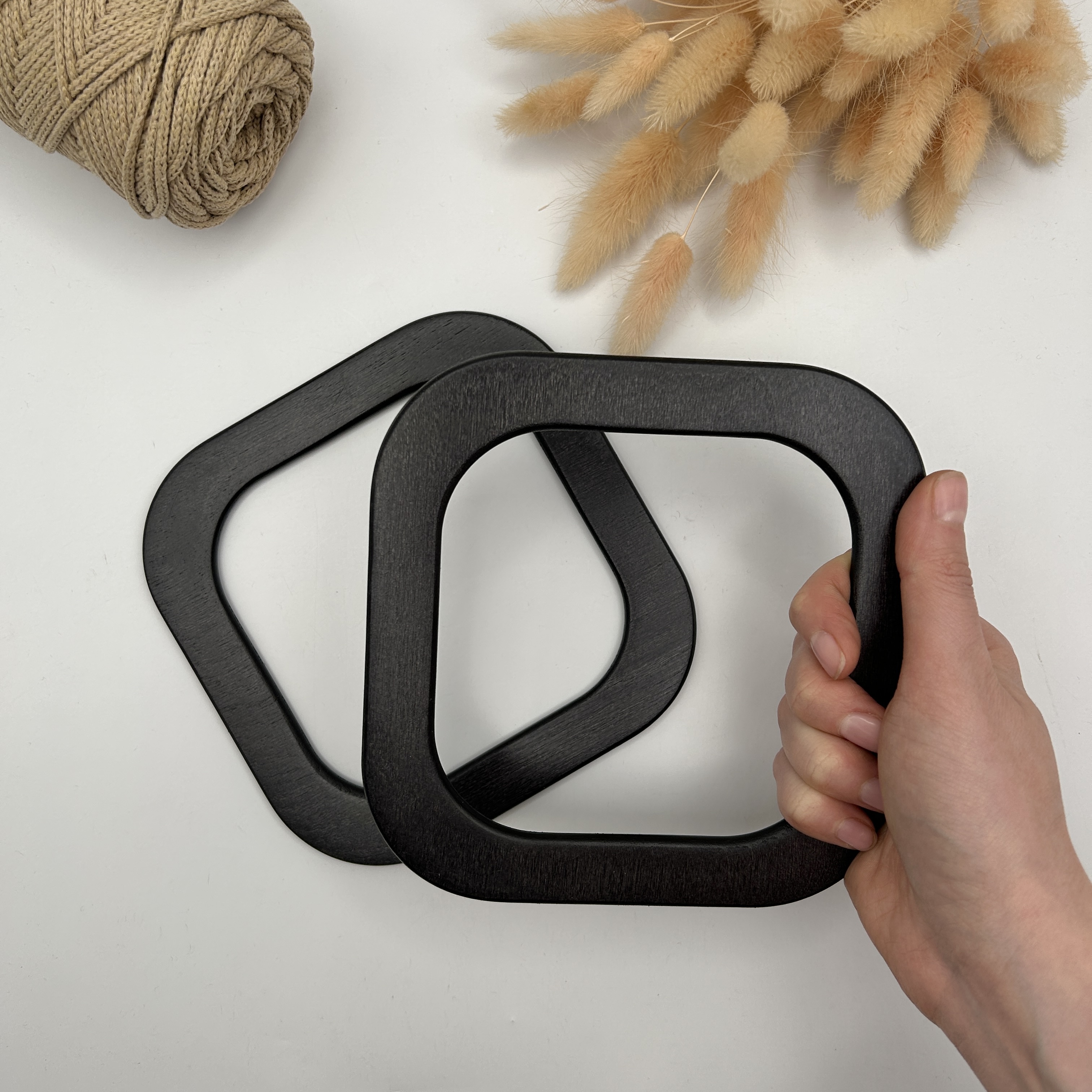 Деревянные ручки для сумки РД-20, квадратные 15х15 см, цвет ЧЁРНЫЕ