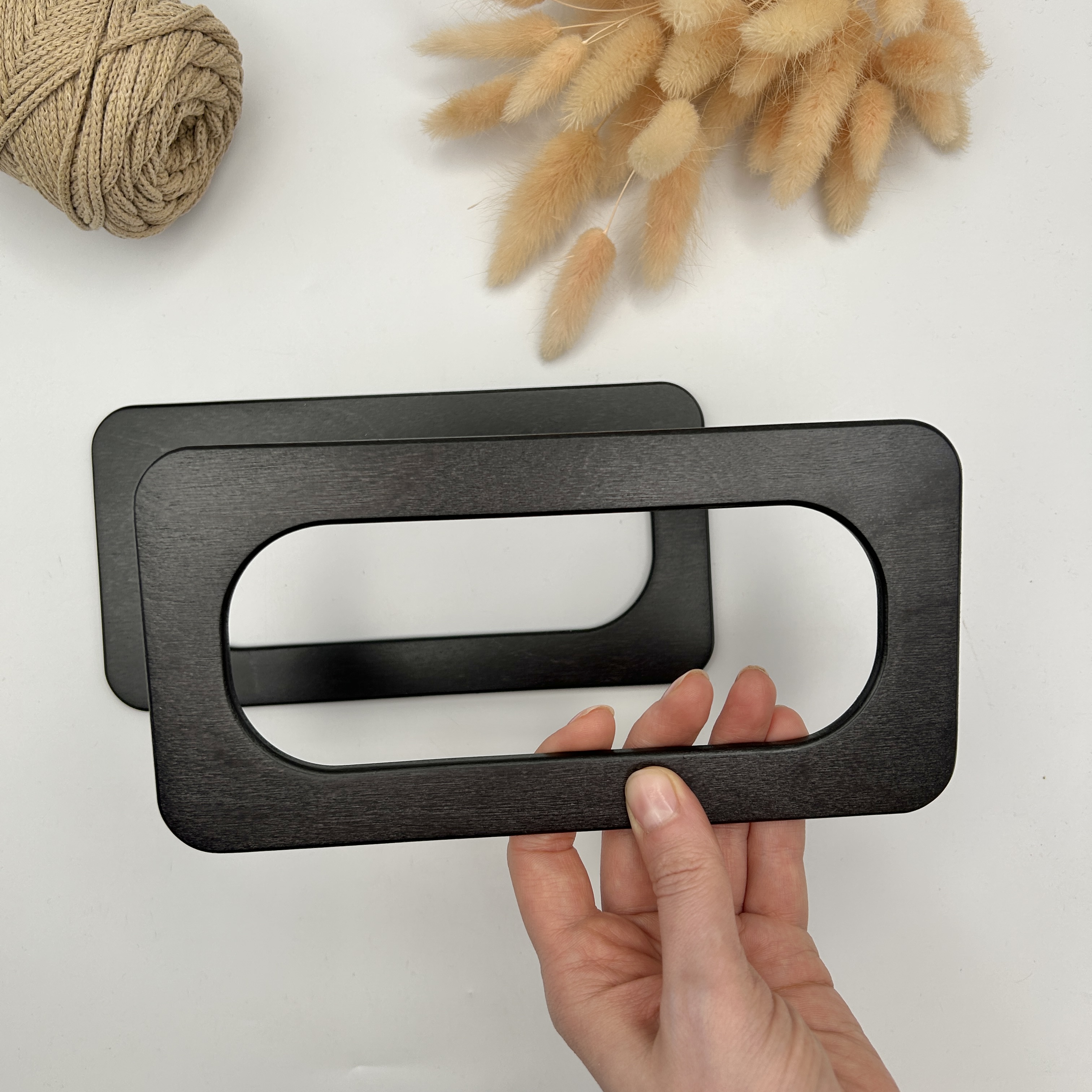 Деревянные ручки для сумки РД-16, прямоугольные 20х10 см, ЧЁРНЫЕ
