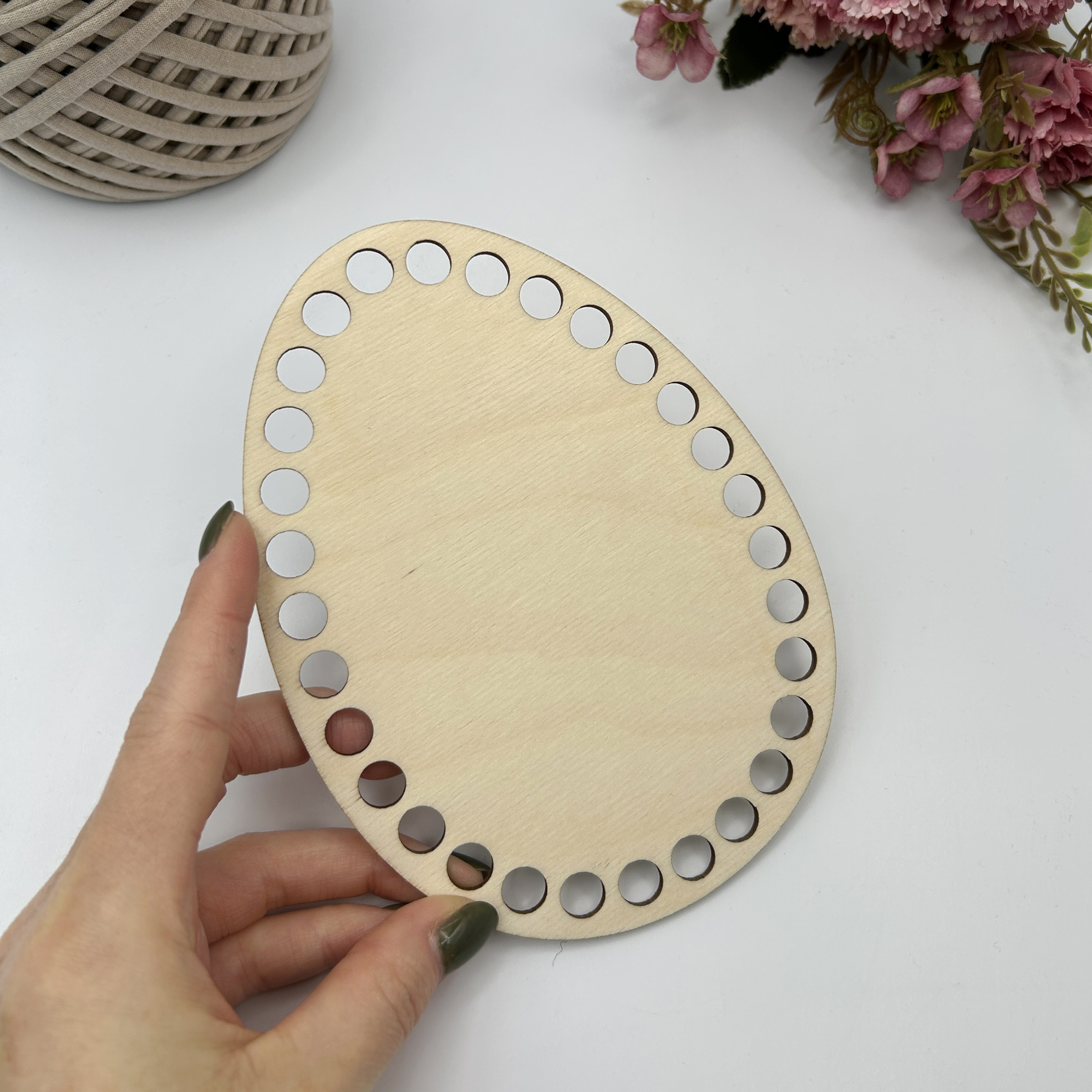 Деревянная заготовка для вязания из трикотажной пряжи. Предает жесткость дну корзинки и устойчивость.Характеристики