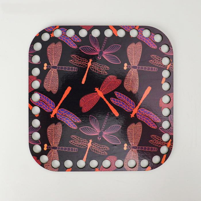 1416 Деревянная крышка с рисунком квадрат "Стрекозы", 15х15 см