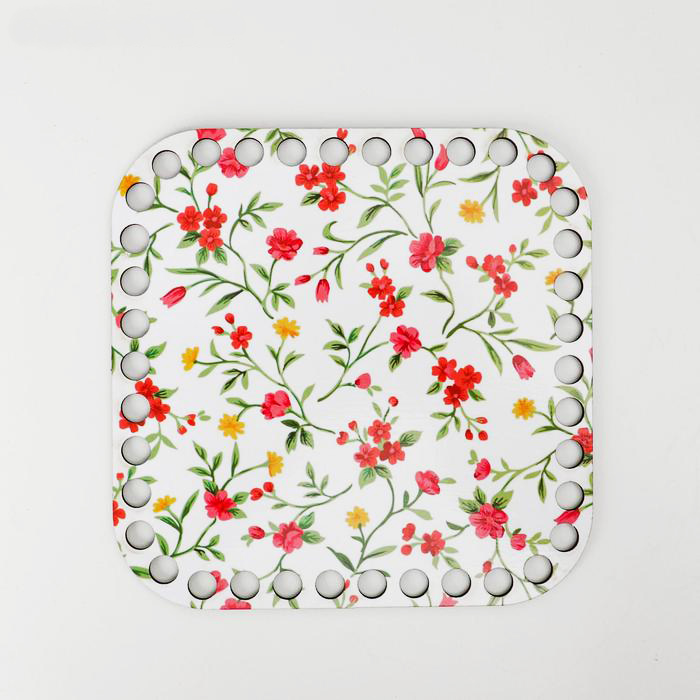 Деревянная заготовка для вязания из трикотажной пряжи. Предает жесткость дну корзинки и устойчивость. Цветная печать на глянцевой пленке.Материал ДВП.