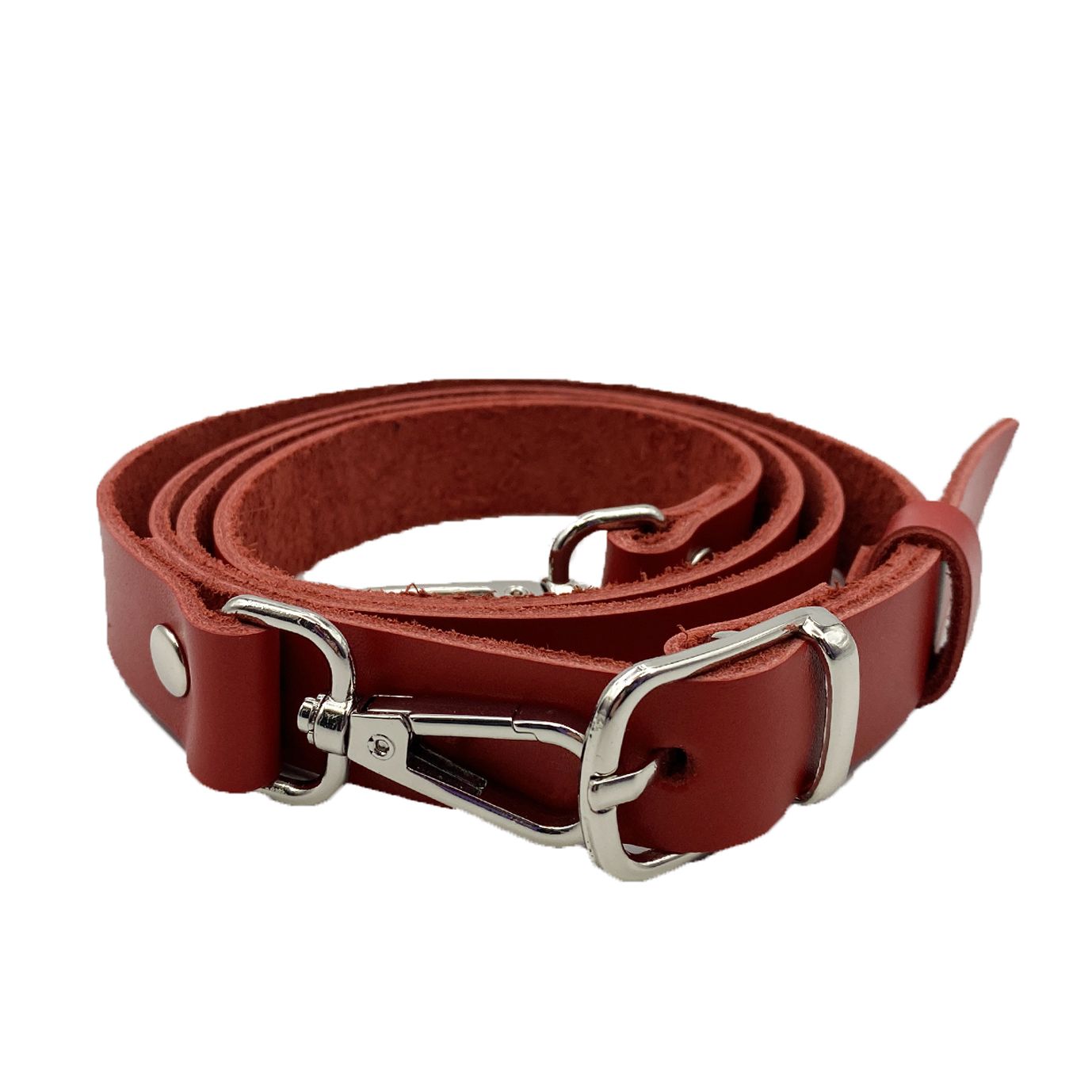 КРР_10 Кожаный регулируемый ремень для сумки с серебряными кнопками и карабинами, 92-118,5 см, Красный