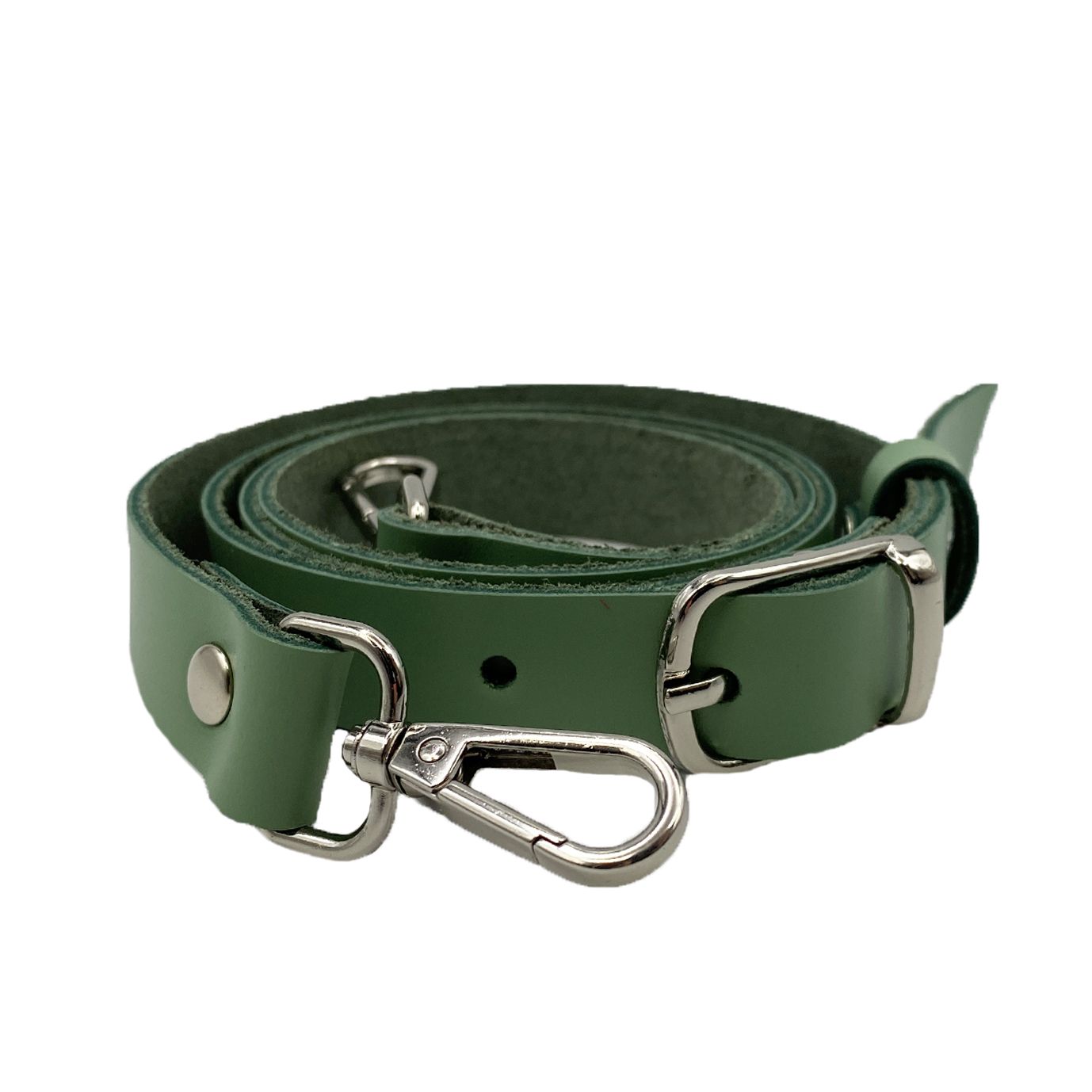 КРР_12 Кожаный регулируемый ремень для сумки с серебряными кнопками и карабинами, 92-118,5 см, Мята