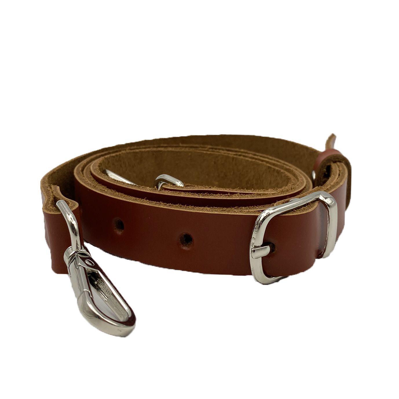 КРР_20 Кожаный регулируемый ремень для сумки с серебряными кнопками и карабинами, 92-118,5 см, Брауни
