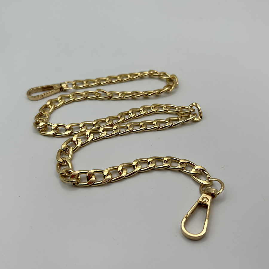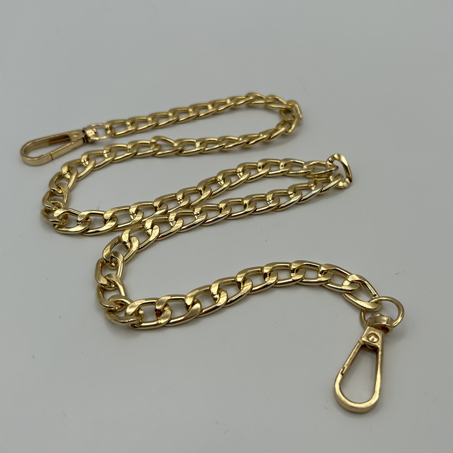 933 Цепь для сумки плоская с карабинами 9х14 мм, длина 60 см, золото