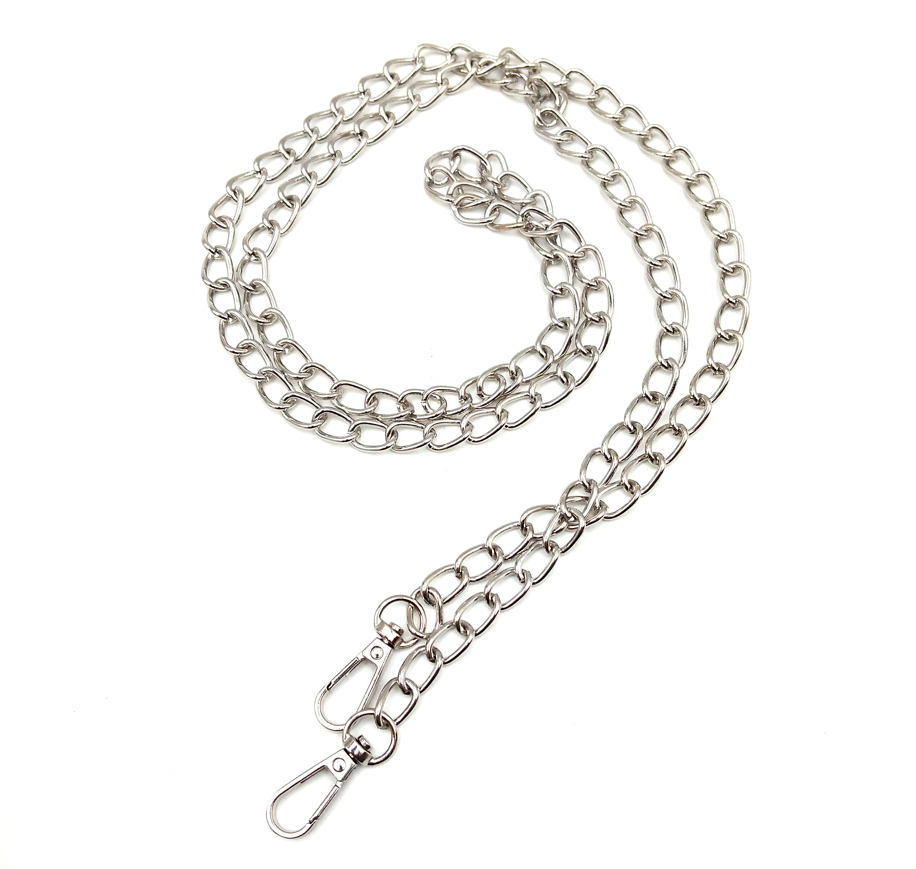 809-2 Цепочка для сумки универсальная 9х14мм, с карабинами 13*35 мм, длина 120 см, серебро