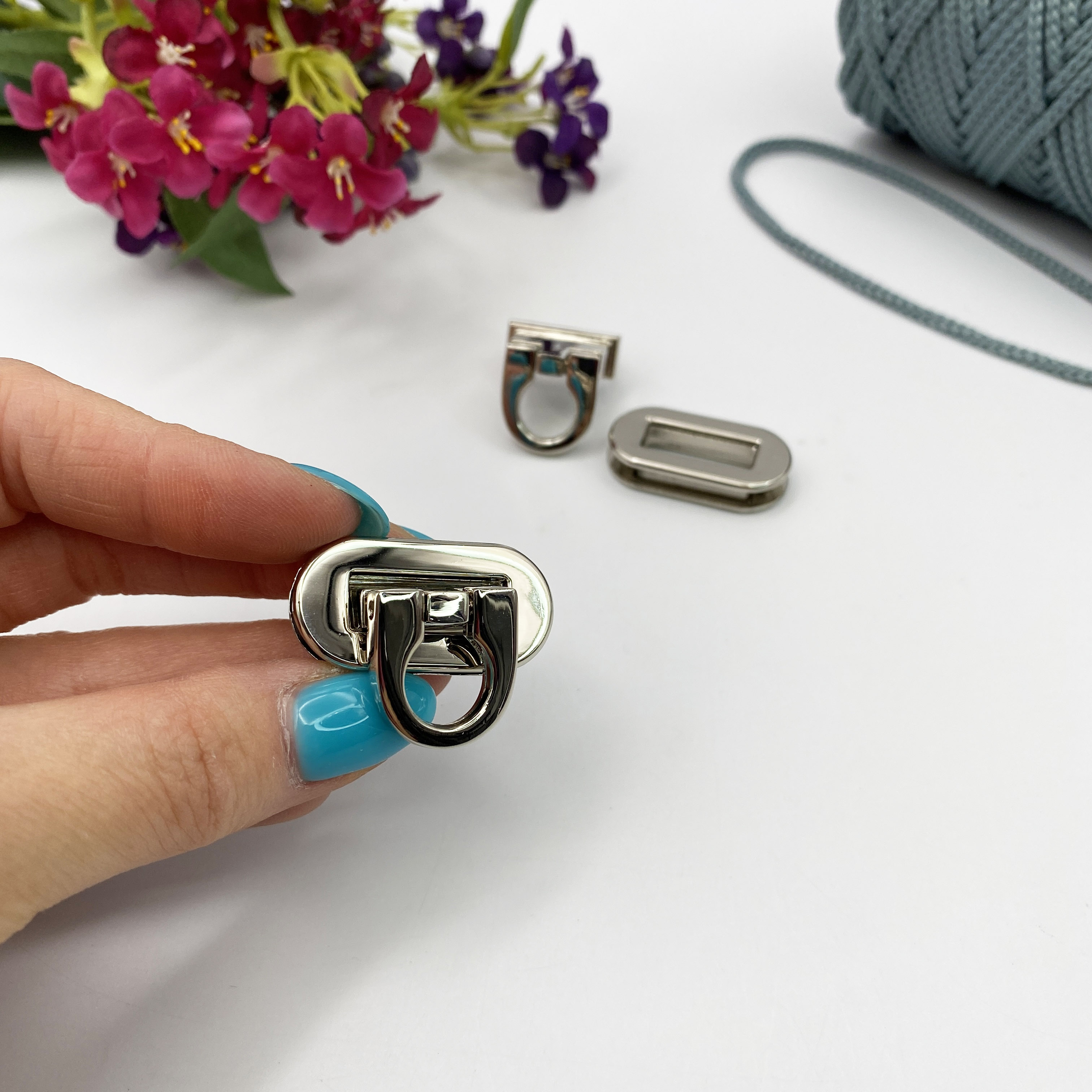 Замок для сумки "ОВАЛ С КОЛЬЦОМ" 858, серебро, 30х15 мм