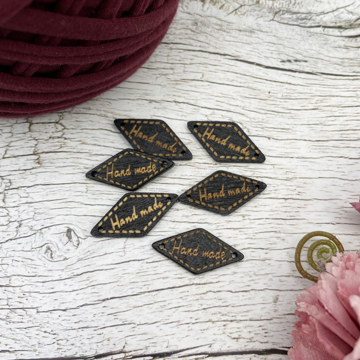 2770 Декоративная бирка из дерева, ромб "HM" 22х13 мм