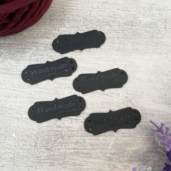 2772 Декоративная бирка из искусственной кожи, "Handmade" 15х40 мм, чёрный