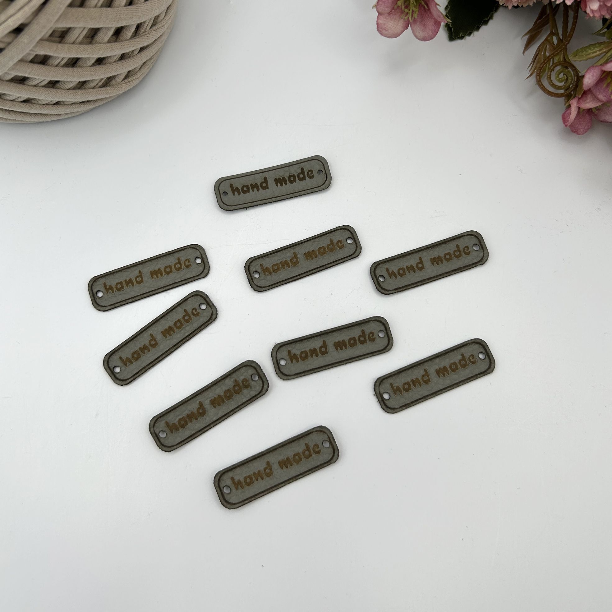 2724-4 Декоративная бирка серая - кож.зам. 40x12мм