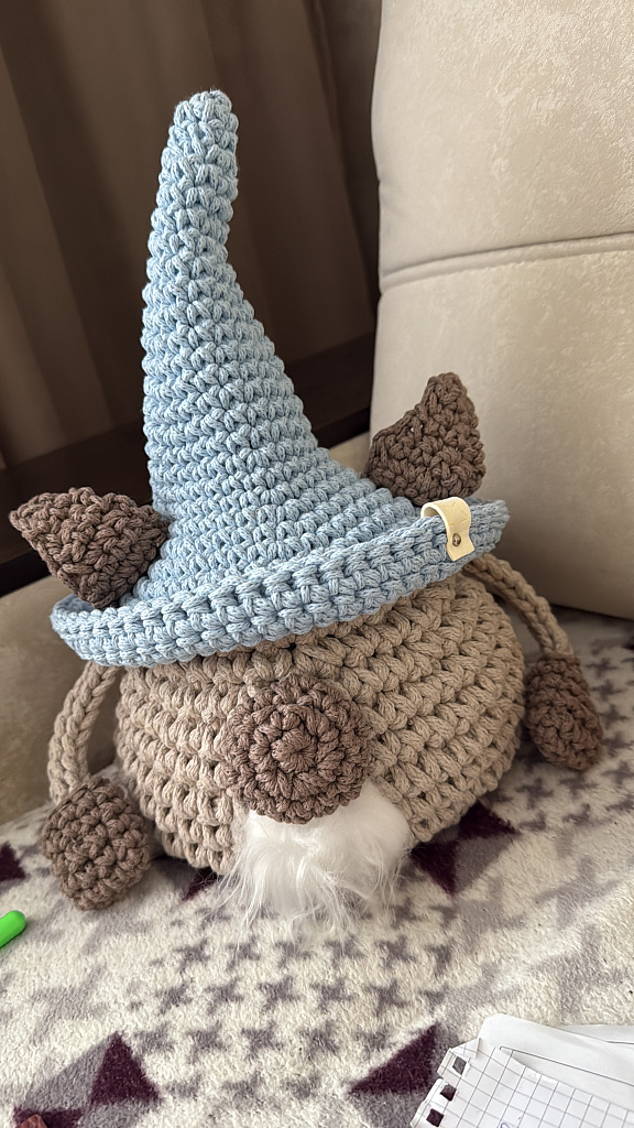 Набор "Шкатулка Гном в зеленой шапочке" х/б шнур 3 и 5 мм и деревянное донышко 17 см + инструкция