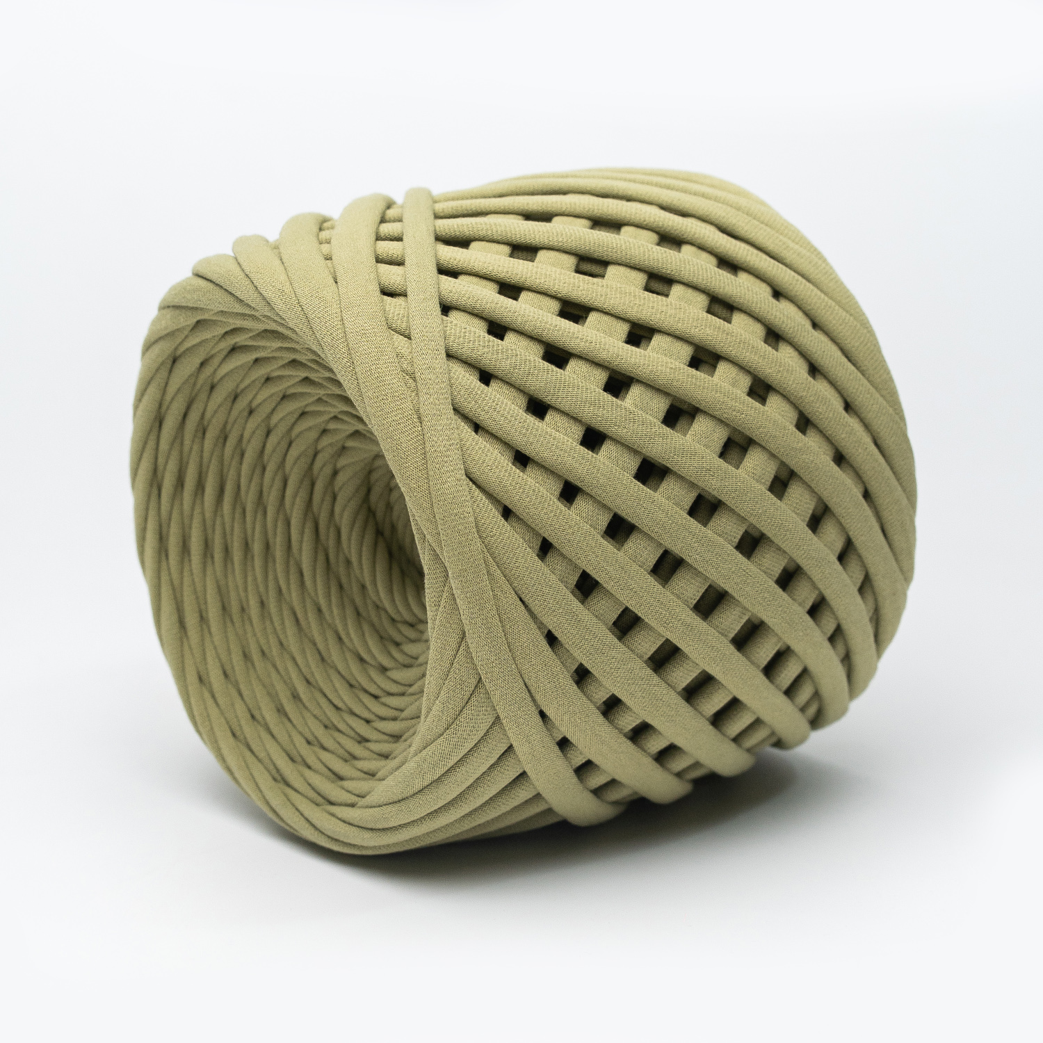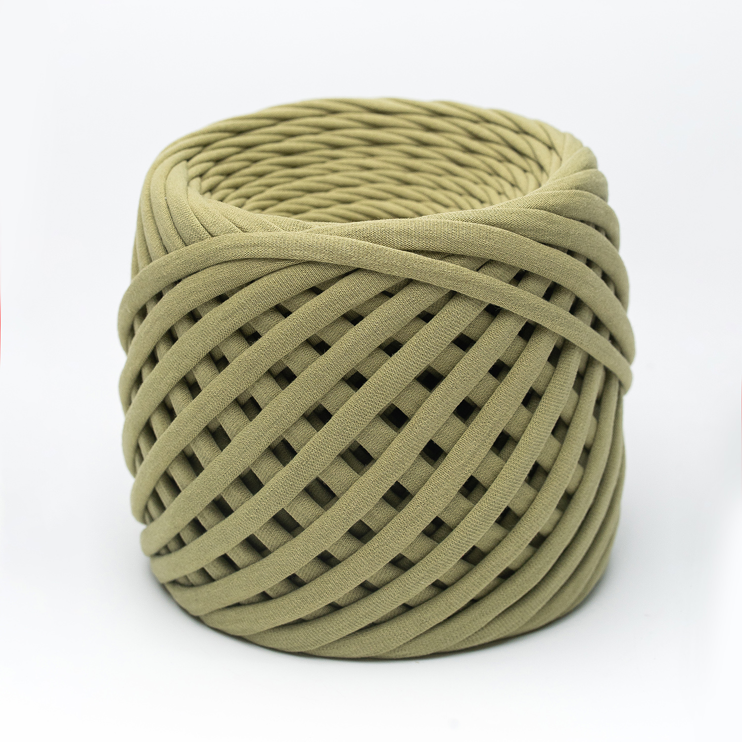 Трикотажная пряжа Hobyt ТП 192 Оливковый, первичная, изнаночная, 100% хлопок, 100 м,7-9 мм