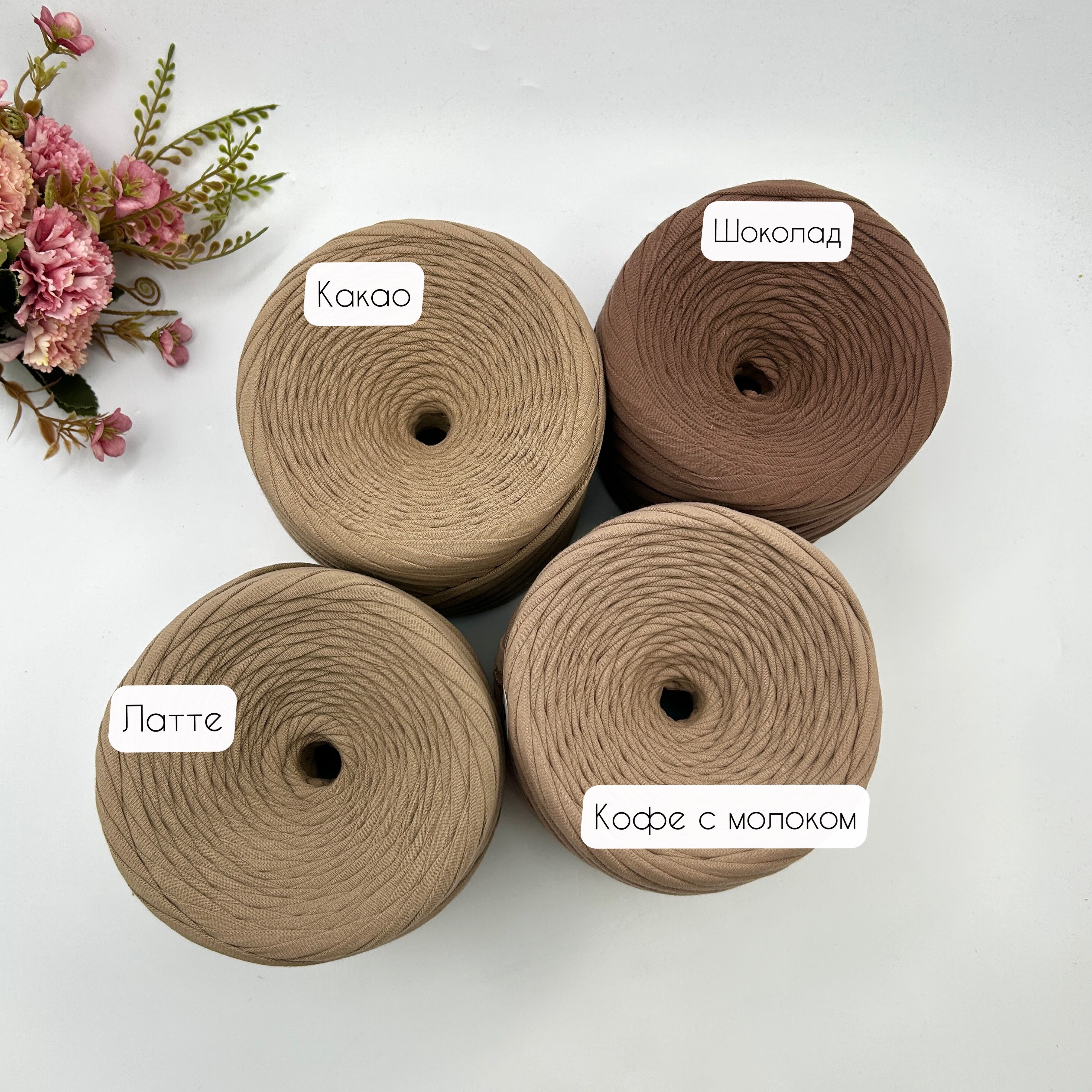 Трикотажная пряжа Hobyt ТП 161 Какао, первичная, изнаночная, 100% хлопок, 100 м, 7-9 мм