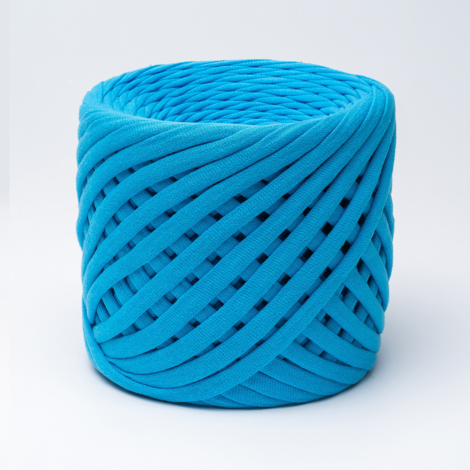 Трикотажная пряжа Hobyt ТП 165 Голубое море, первичная, изнаночная, 100% хлопок, 100 м, 7-9 мм