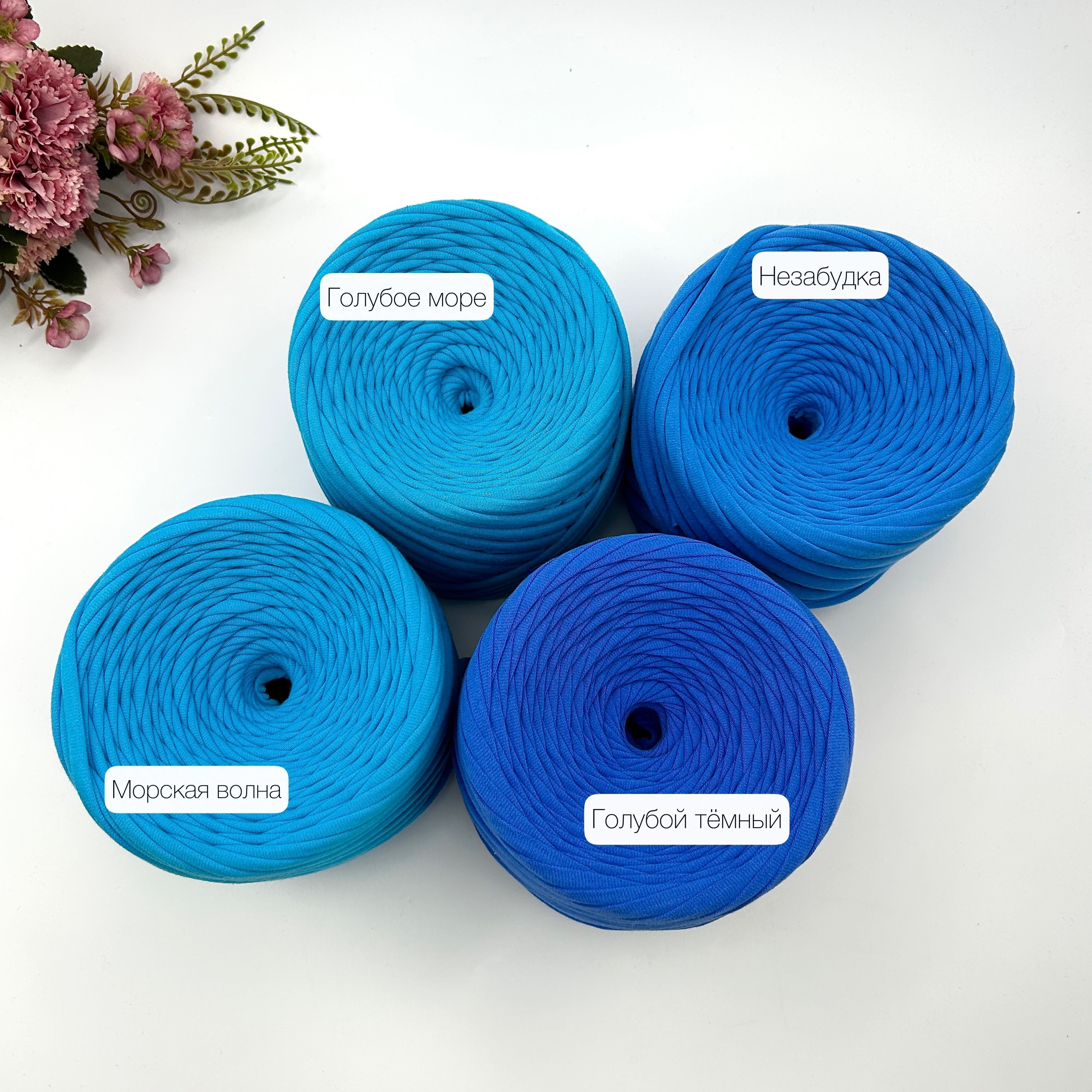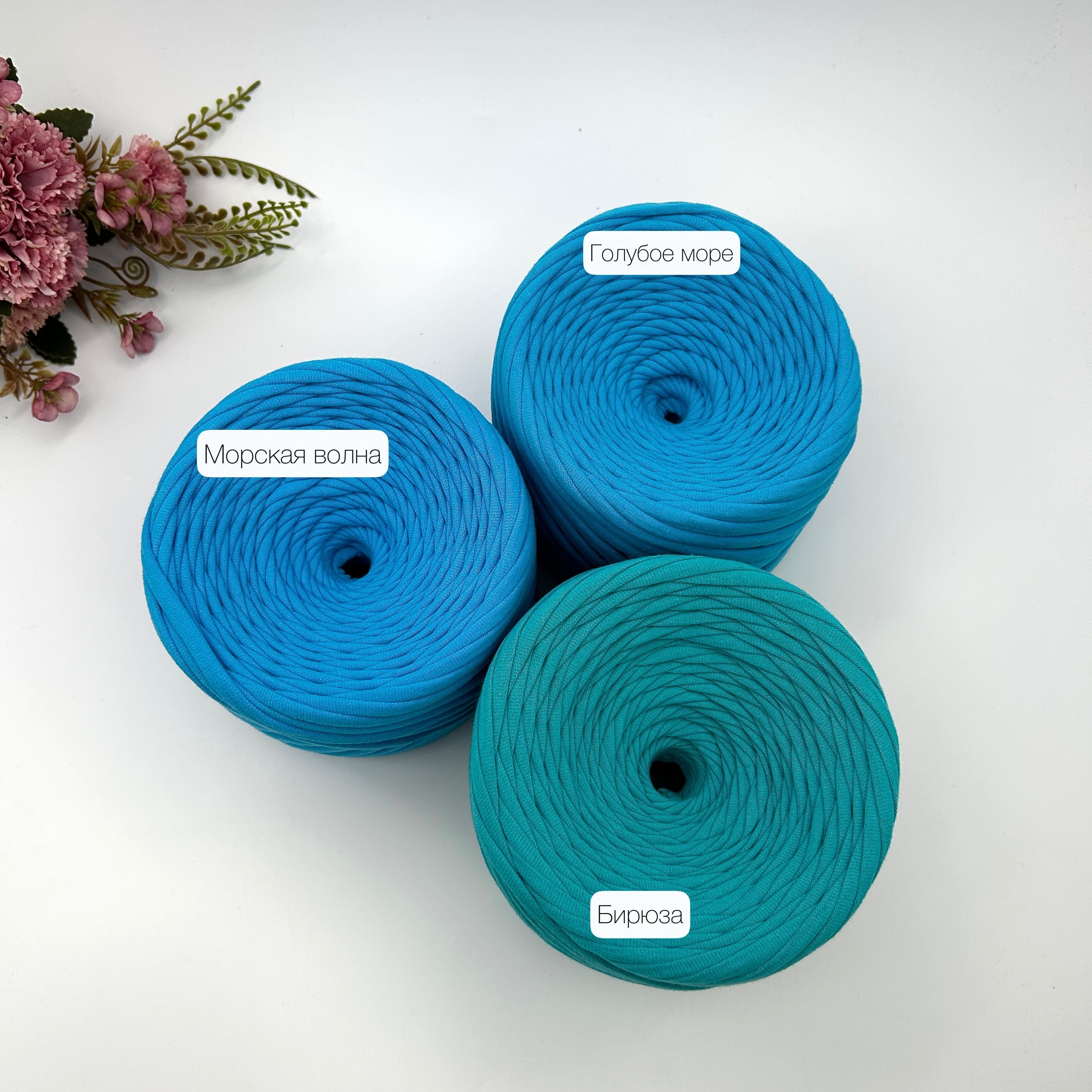 Трикотажная пряжа Hobyt ТП 165 Голубое море, первичная, изнаночная, 100% хлопок, 100 м, 7-9 мм