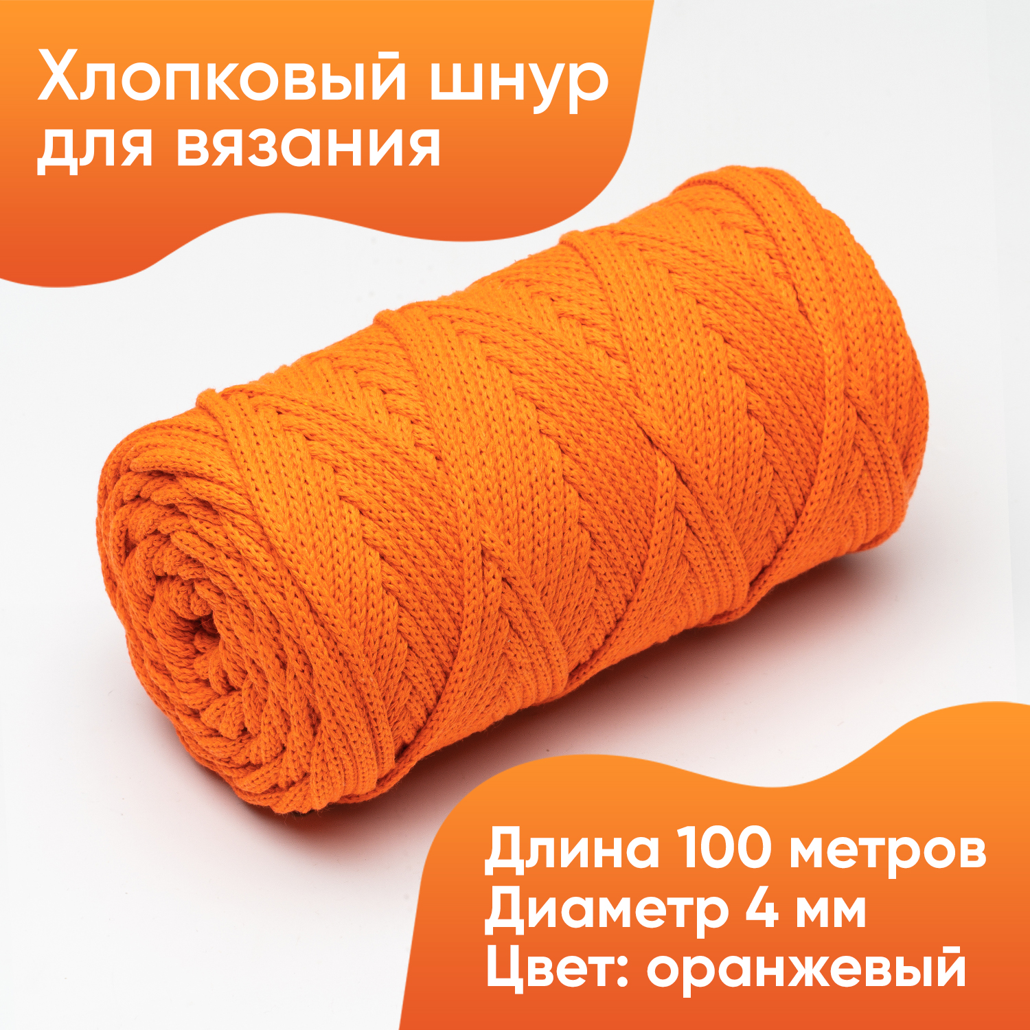Хлопковый Шнур для вязания ШХ_20 Оранжевый, 4мм/100м, хлопок