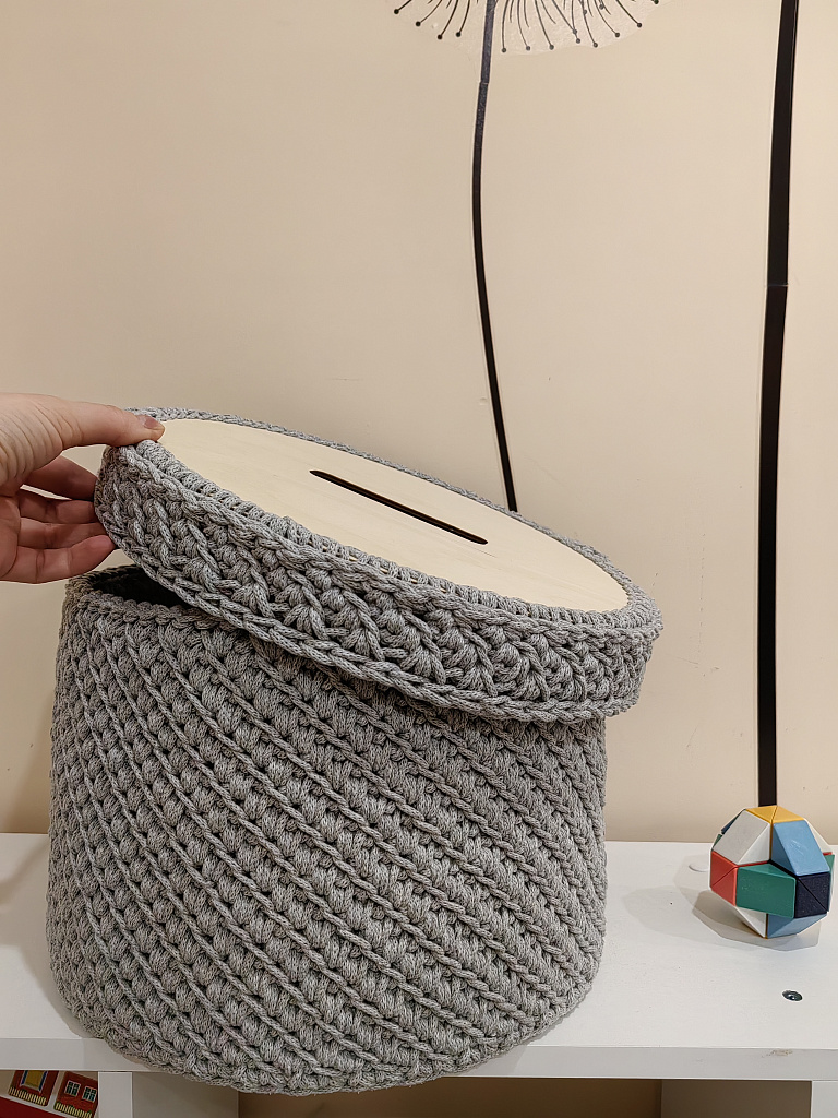 Вязала из хлопкового шнура 4 мм, донышко 30 мм. Для таких размеров нужно брать шнур 5 мм. Шнур качественный, по всей длине равномерно окрашен, без обрыва. Доставка быстрая, спасибо.