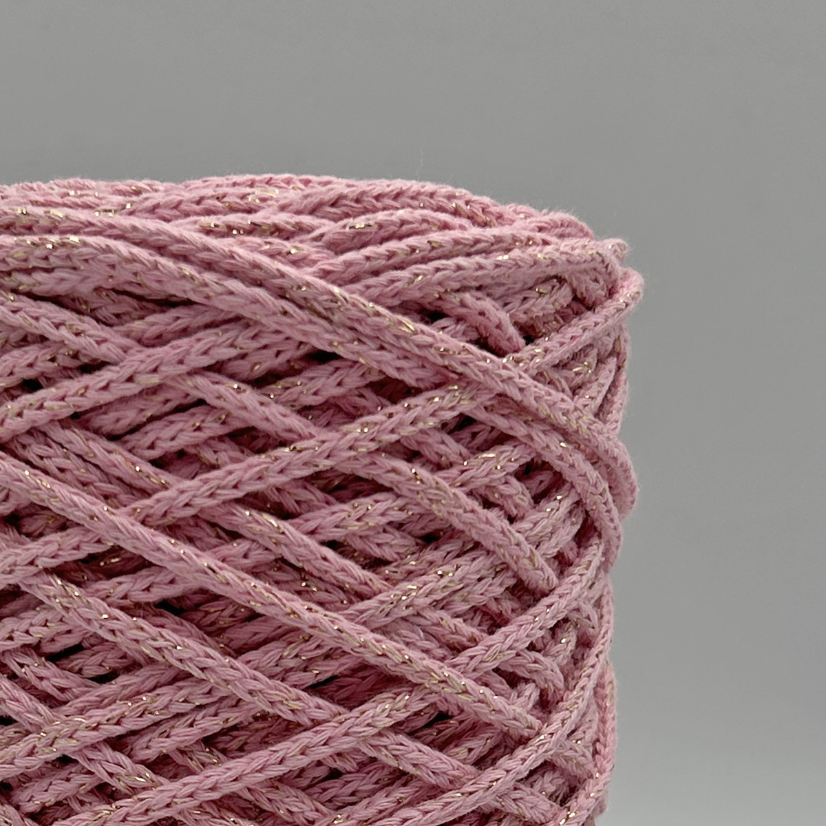 Хлопковый Шнур Нежно-розовый с золотым люрексом, Змм/100 м