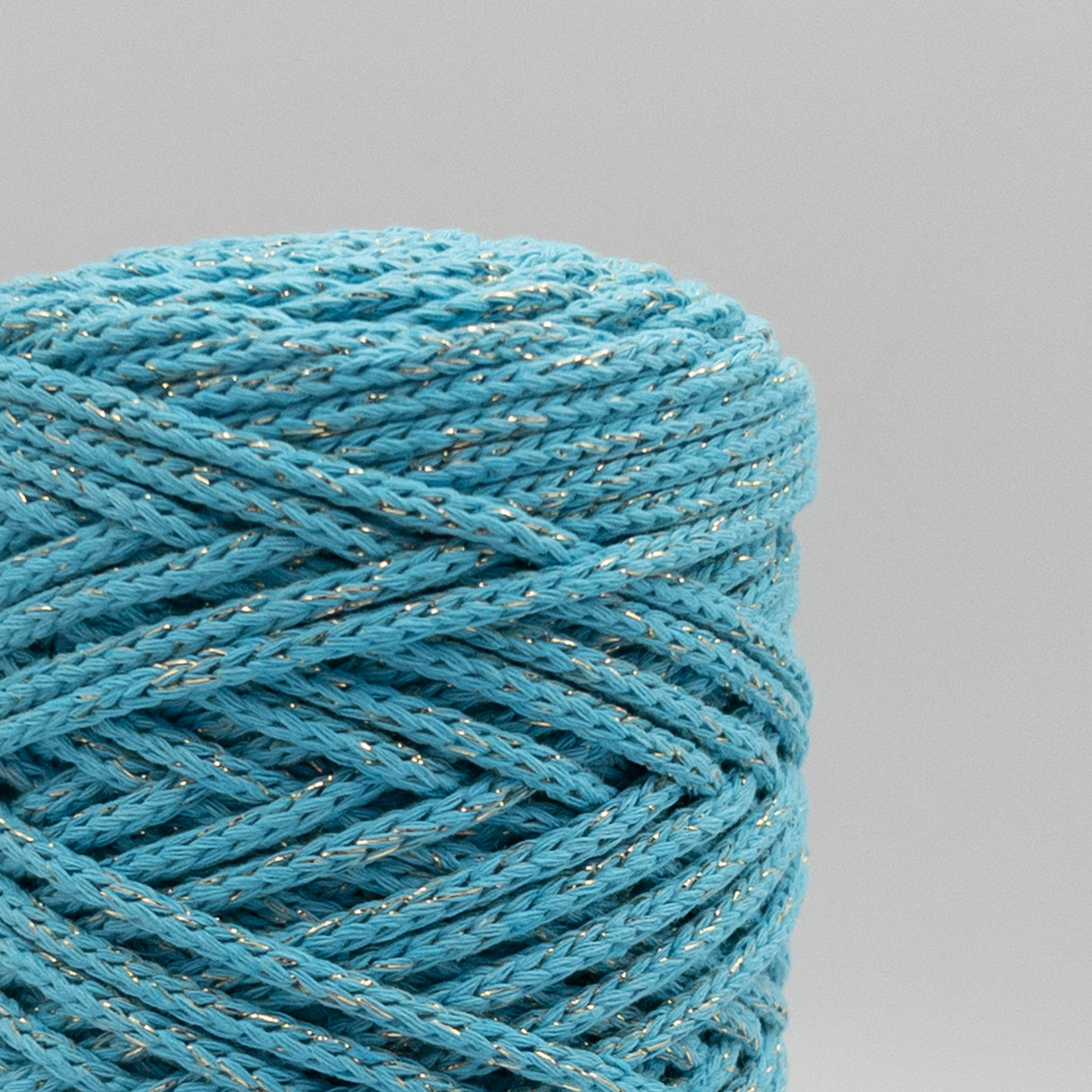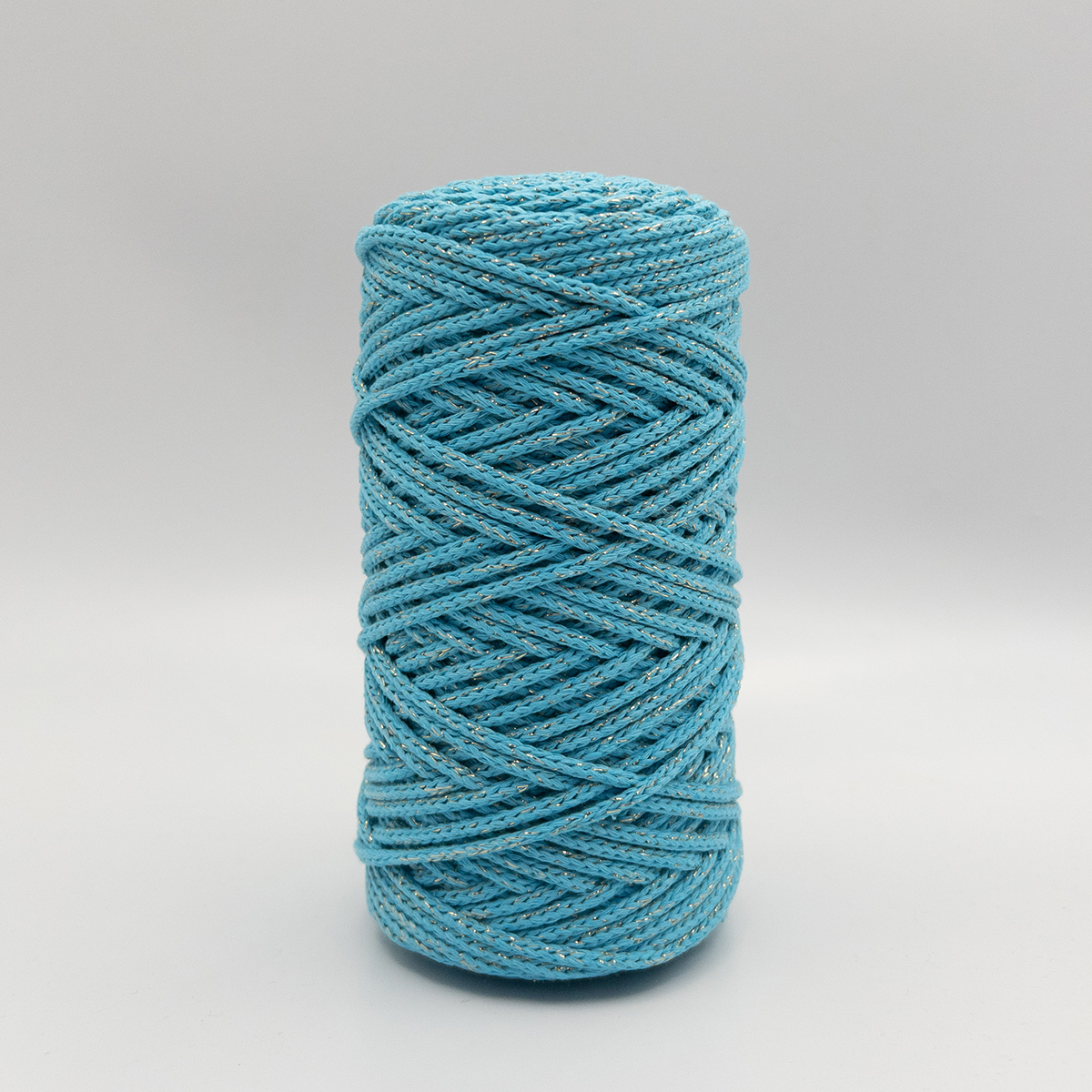 Хлопковый Шнур Бирюза с золотым люрексом, Змм/100 м