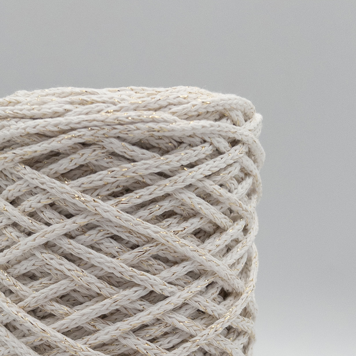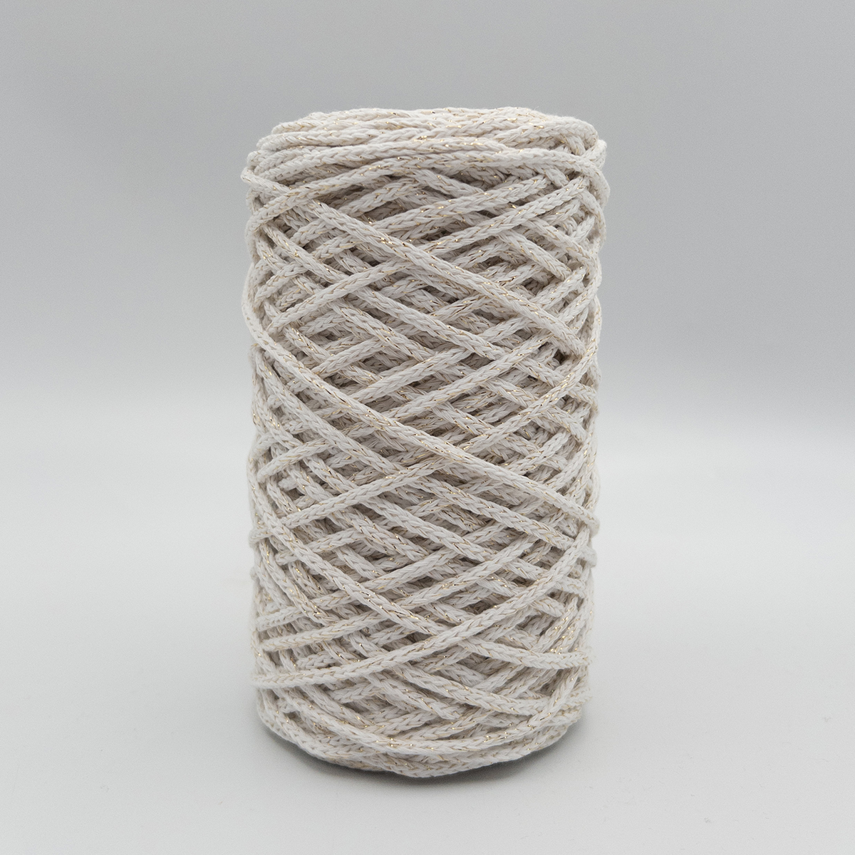 Хлопковый Шнур Белый с золотым люрексом, Змм/100 м
