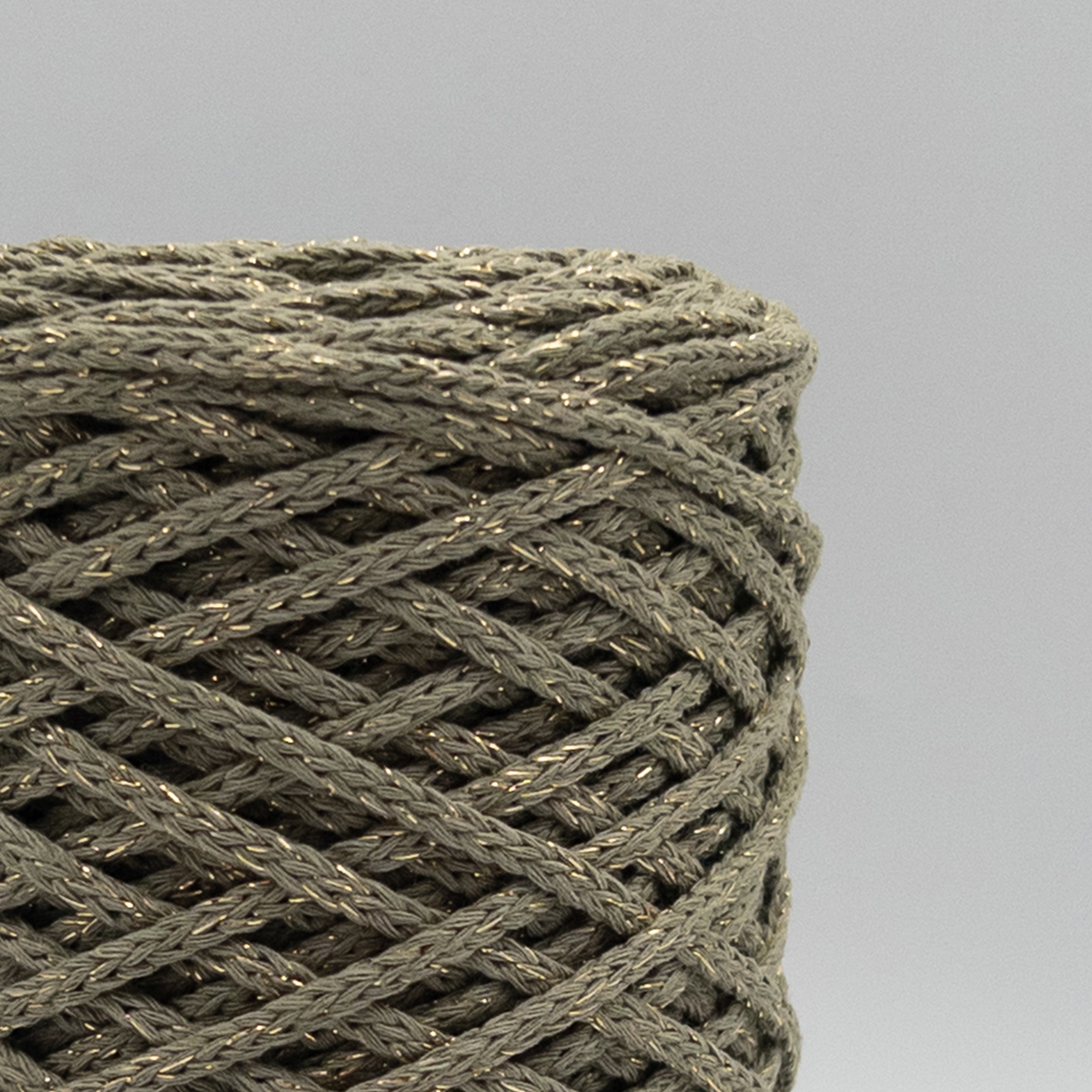 Хлопковый Шнур Шалфей с золотым люрексом, Змм/100 м