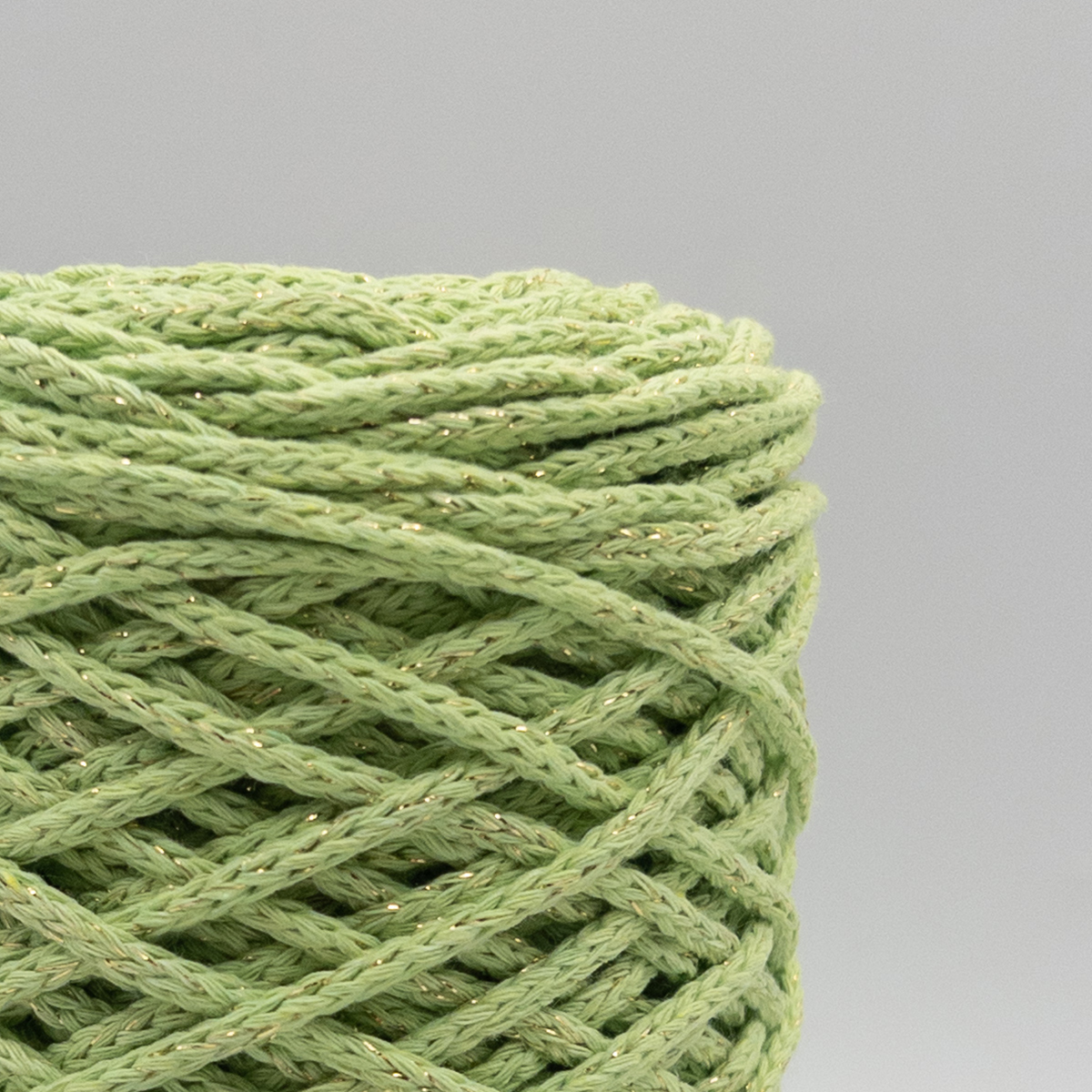 Хлопковый Шнур Фисташка с золотым люрексом, Змм/100 м