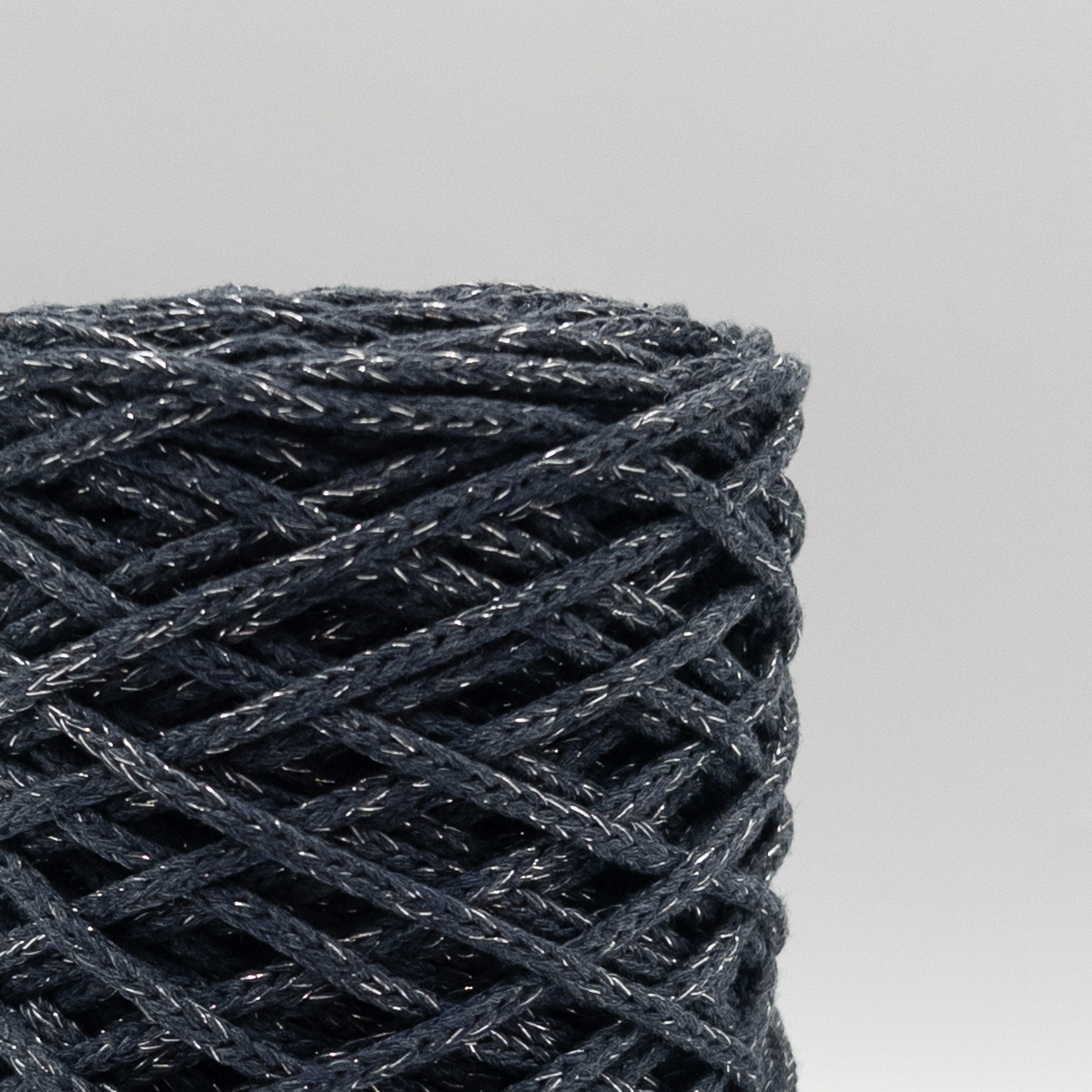 Хлопковый Шнур Тёмный джинс с серебряным люрексом, Змм/100 м