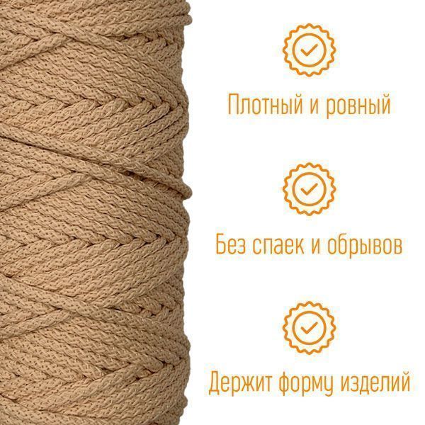 Полиэфирный Шнур с сердечником для вязания Ш-ПЭ5-55 Топлёное молоко, 5мм/100 м
