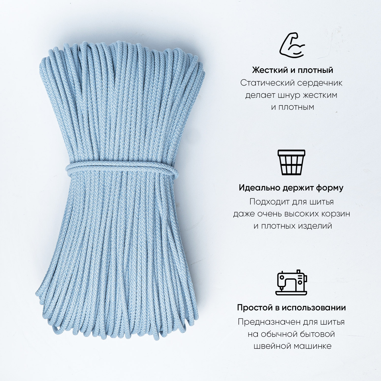Хлопковый шнур для шитья с сердечником 5 мм/30 м, цвет Небесный