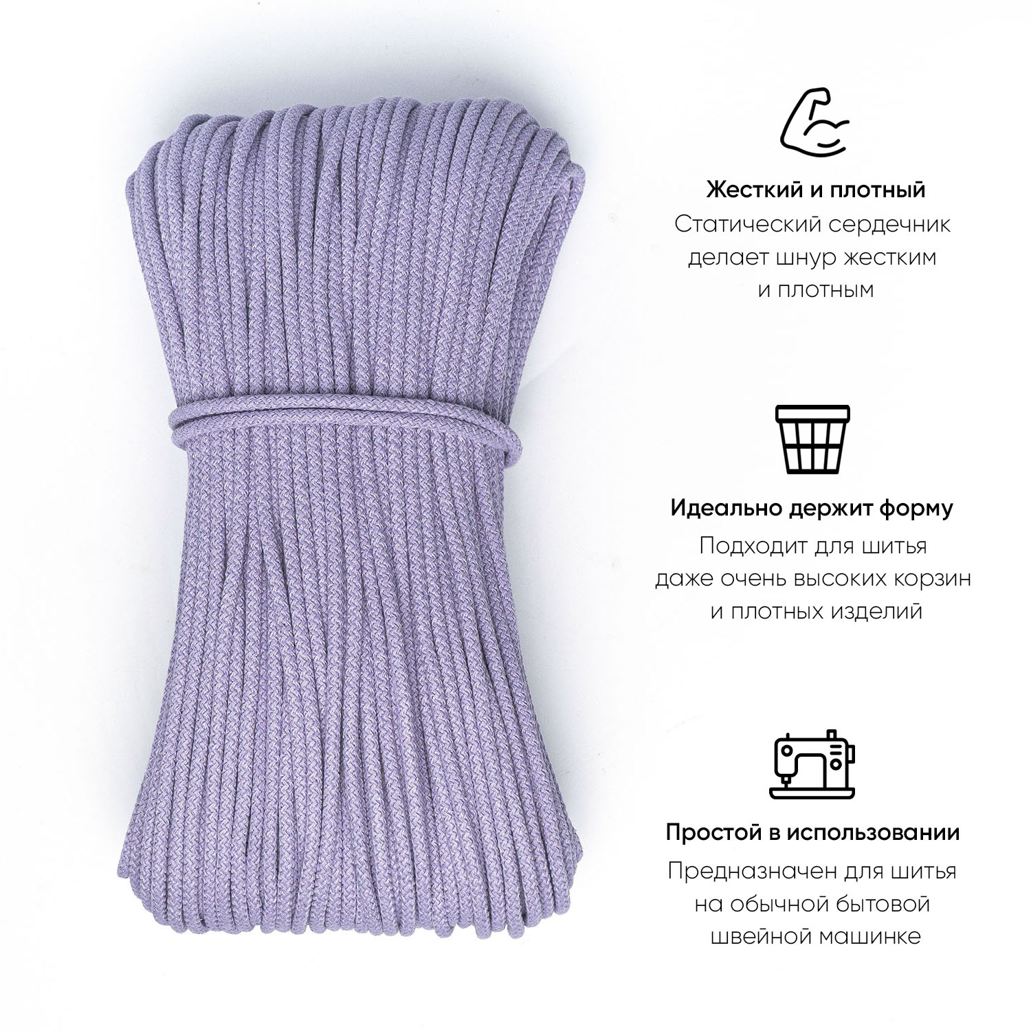 Хлопковый шнур для шитья с сердечником 5 мм/100 м, цвет Сирень