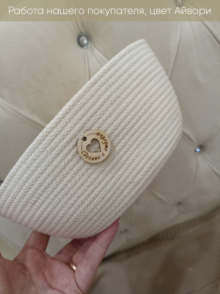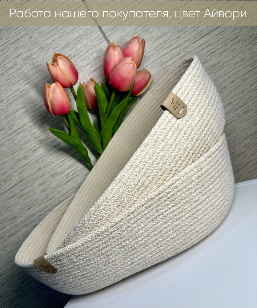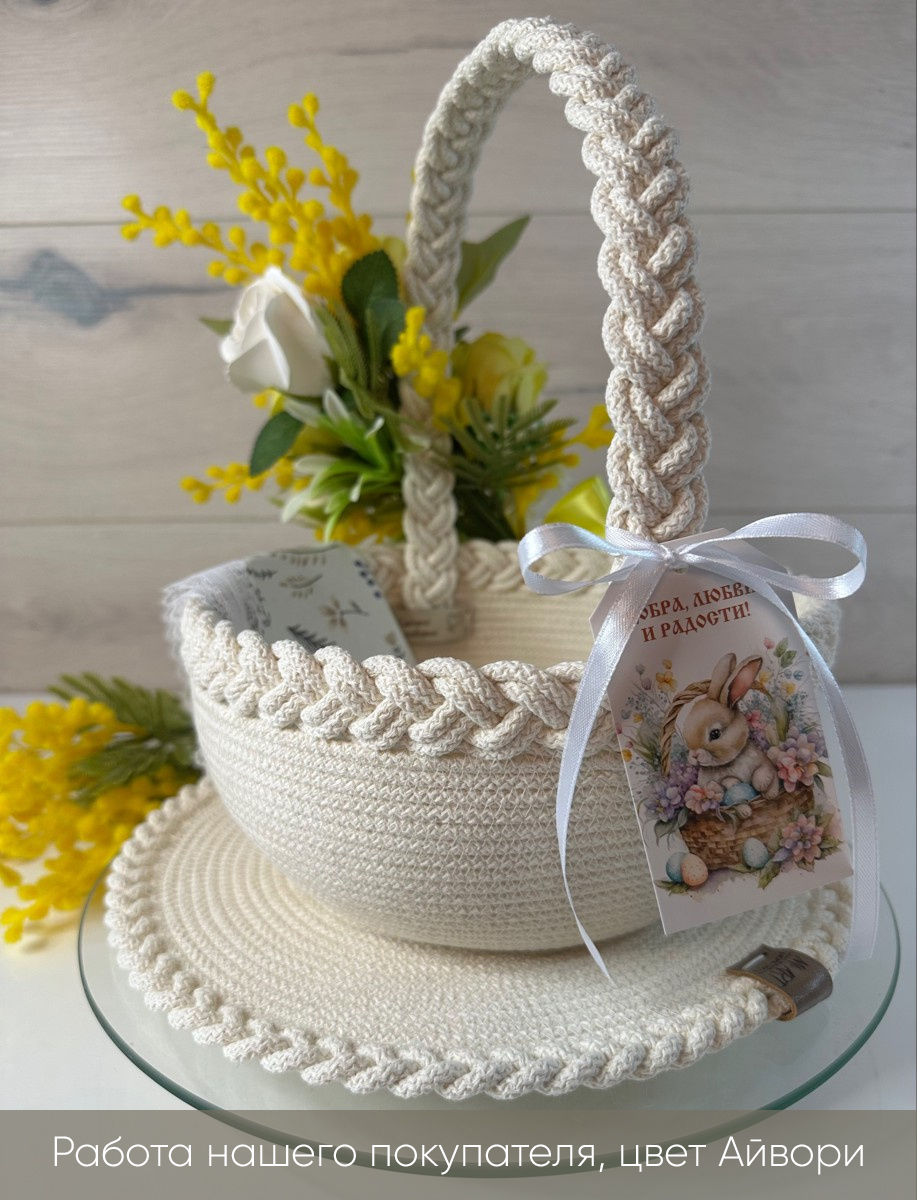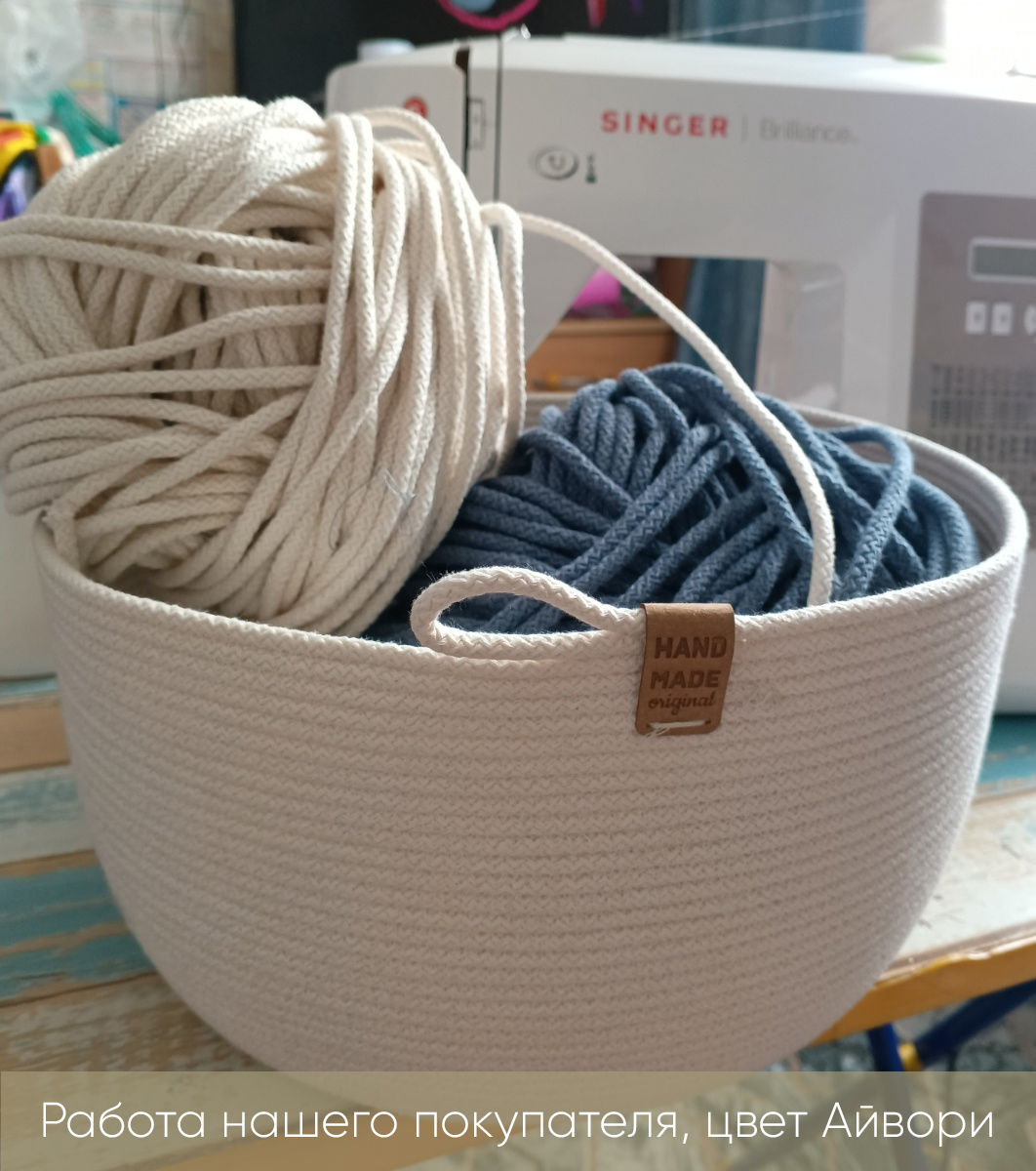 Легкое оформление заказа и быстрая доставка. Заказала шнур 4 мм, немного прогадала, нужно было заказывать 5 мм. Не подходит для, вязания больших корзин. Для корзин диаметром до 20 см подойдет отлично