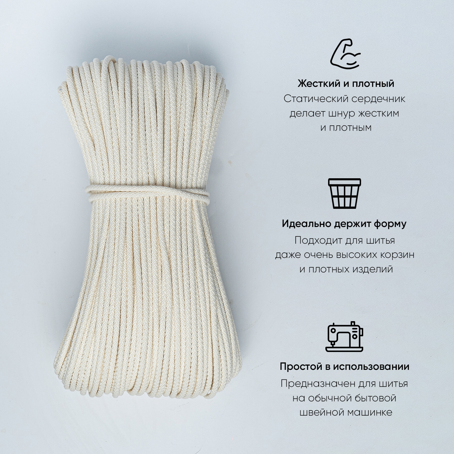 Хлопковый шнур для шитья с сердечником 5 мм/50 м, цвет Айвори