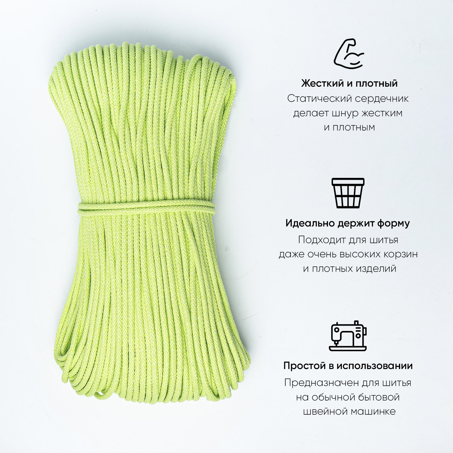 Хлопковый шнур для шитья с сердечником 5 мм/30 м, цвет Фисташка