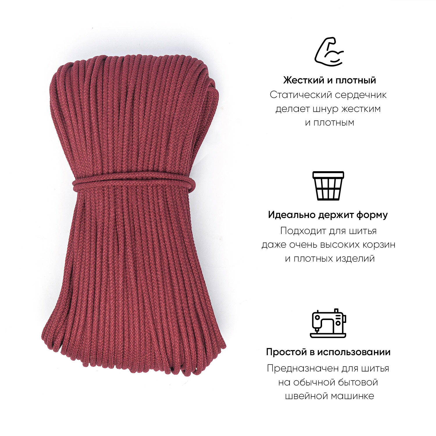 Хлопковый шнур для шитья с сердечником 5 мм/100 м, цвет Рубин