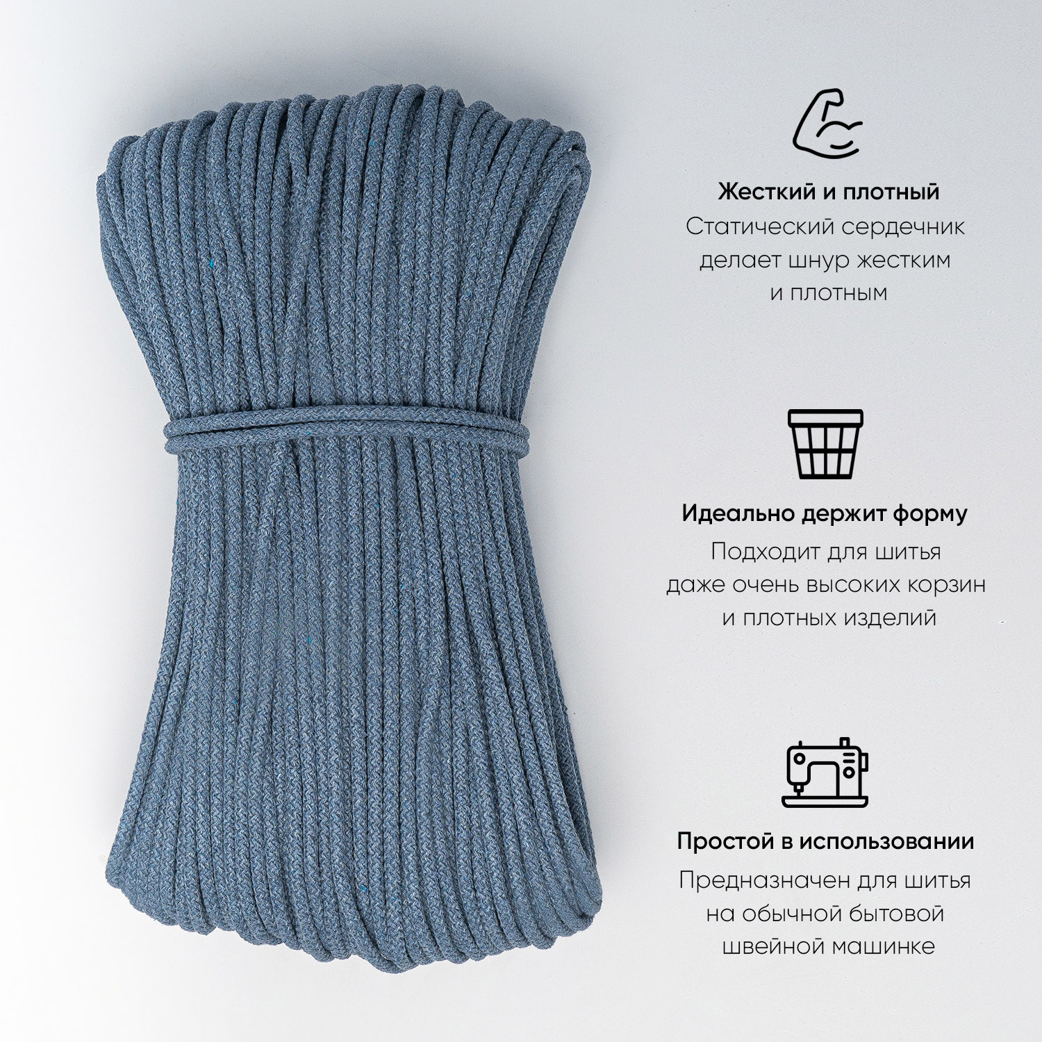 Хлопковый шнур для шитья с сердечником 5 мм/50 м, цвет Светлый джинс