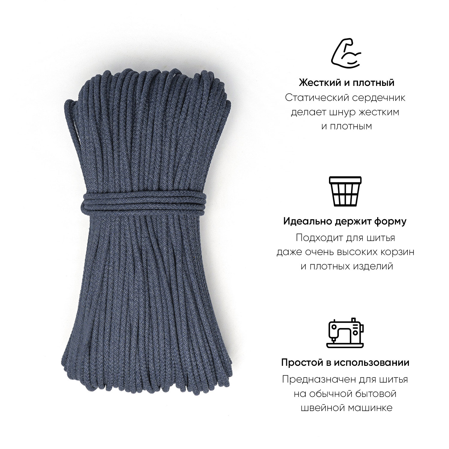 Хлопковый шнур для шитья с сердечником 5 мм/100 м, цвет Серо-синий