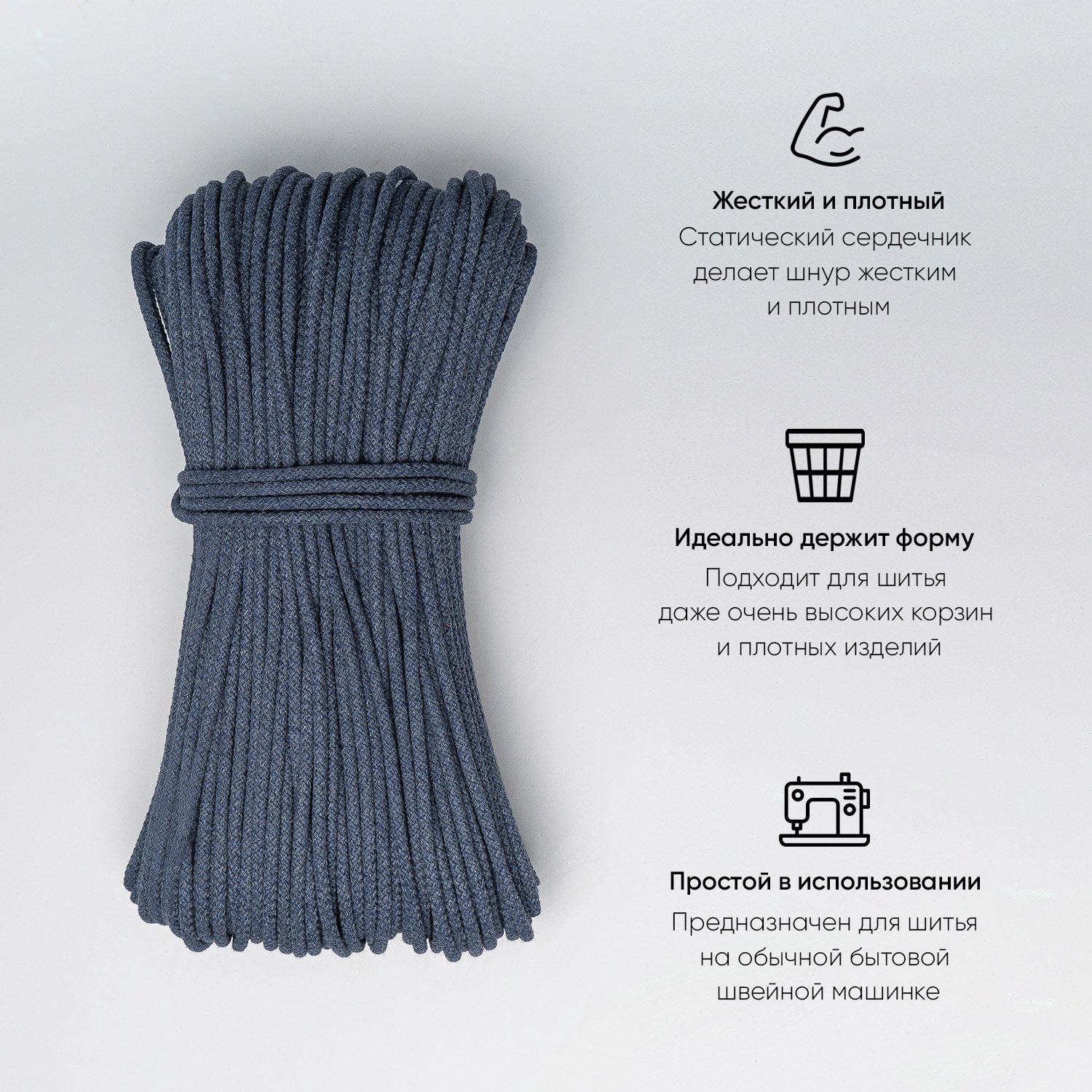 Хлопковый шнур для шитья с сердечником 5 мм/30 м, цвет Серо-синий