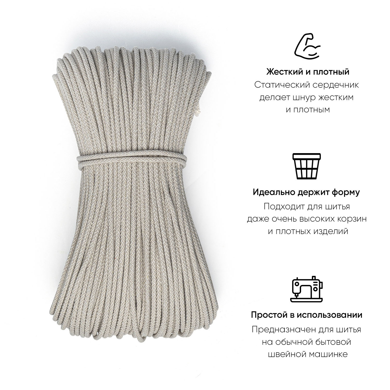 Хлопковый шнур для шитья с сердечником 5 мм/100 м, цвет Серо-бежевый