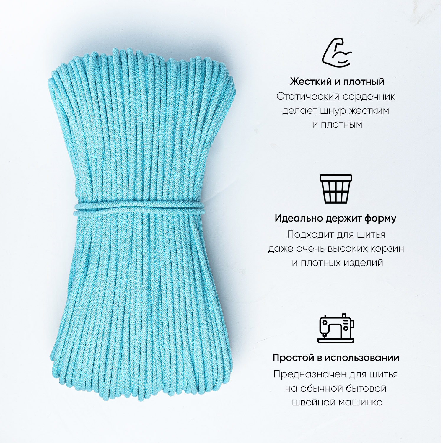 Хлопковый шнур для шитья с сердечником 5 мм/100 м, цвет Голубая лагуна