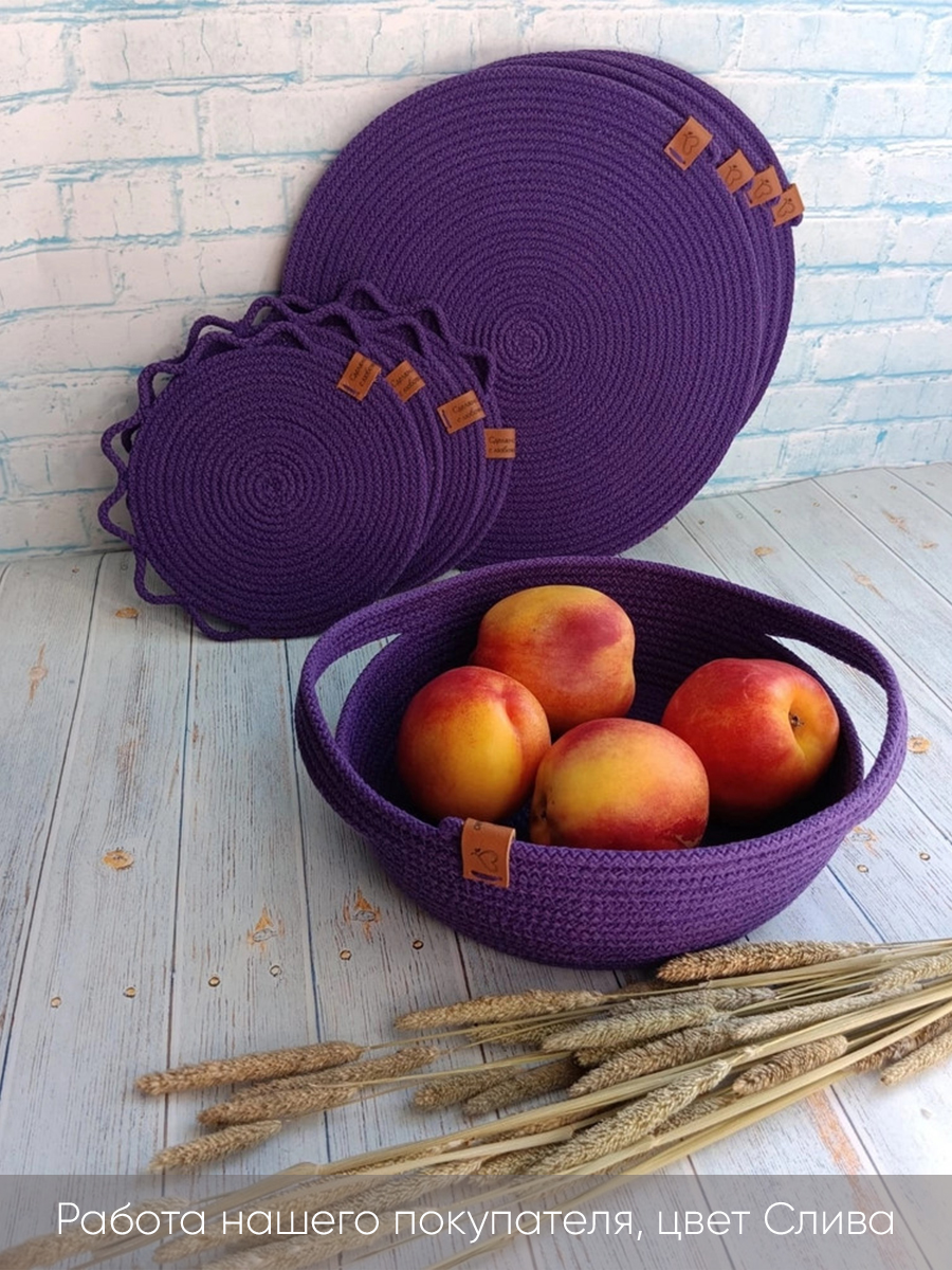 Легкое оформление заказа и быстрая доставка. Заказала шнур 4 мм, немного прогадала, нужно было заказывать 5 мм. Не подходит для, вязания больших корзин. Для корзин диаметром до 20 см подойдет отлично