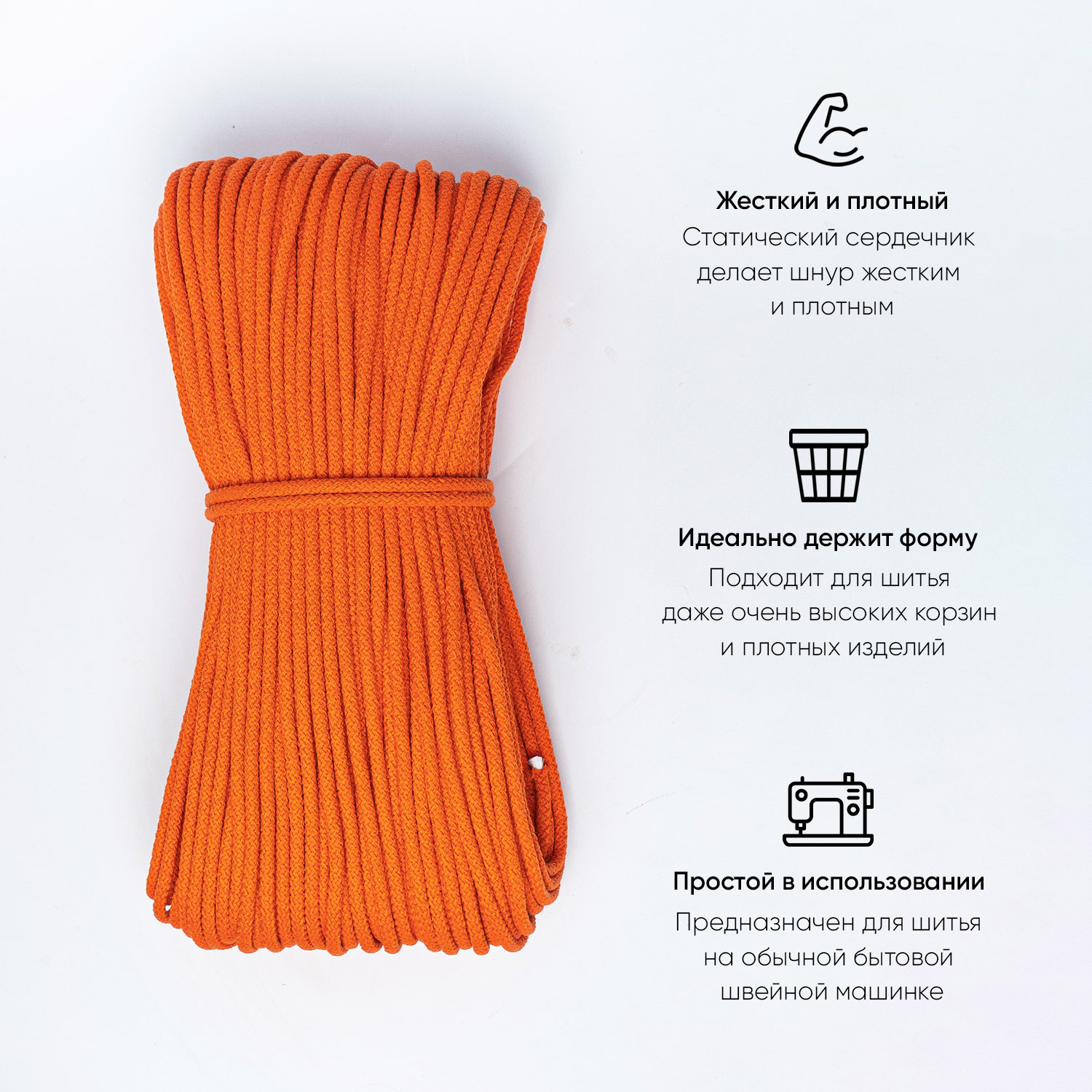 Хлопковый шнур для шитья с сердечником 5 мм/50 м, цвет Оранжевый