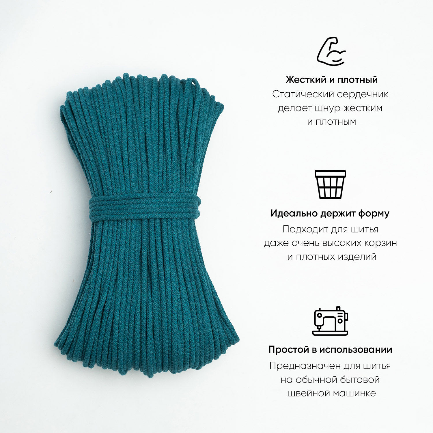 Хлопковый шнур для шитья с сердечником 5 мм/30 м, цвет Голубая ель