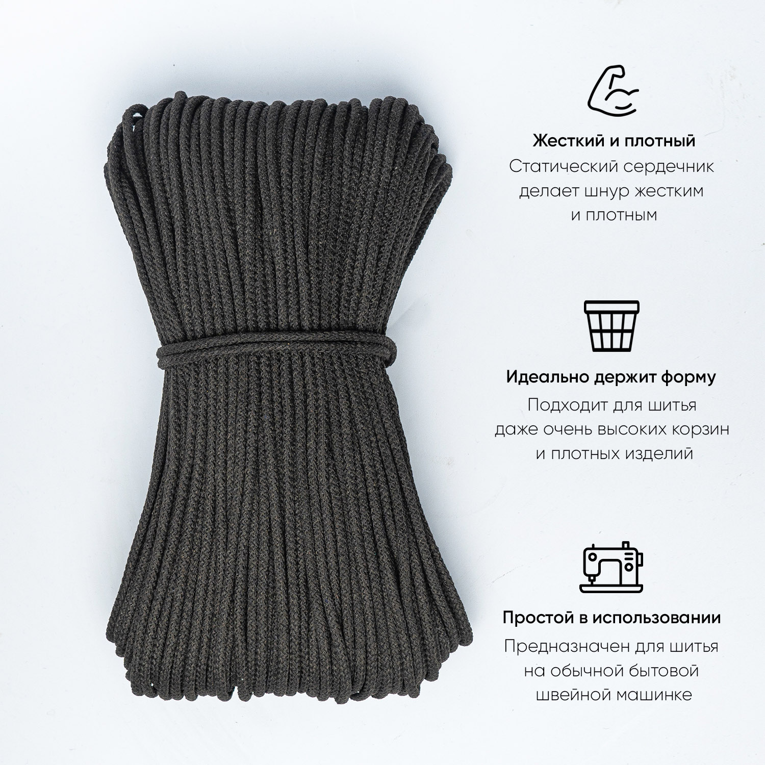 Хлопковый шнур для шитья с сердечником 5 мм/100 м, цвет Тёмно-коричневый