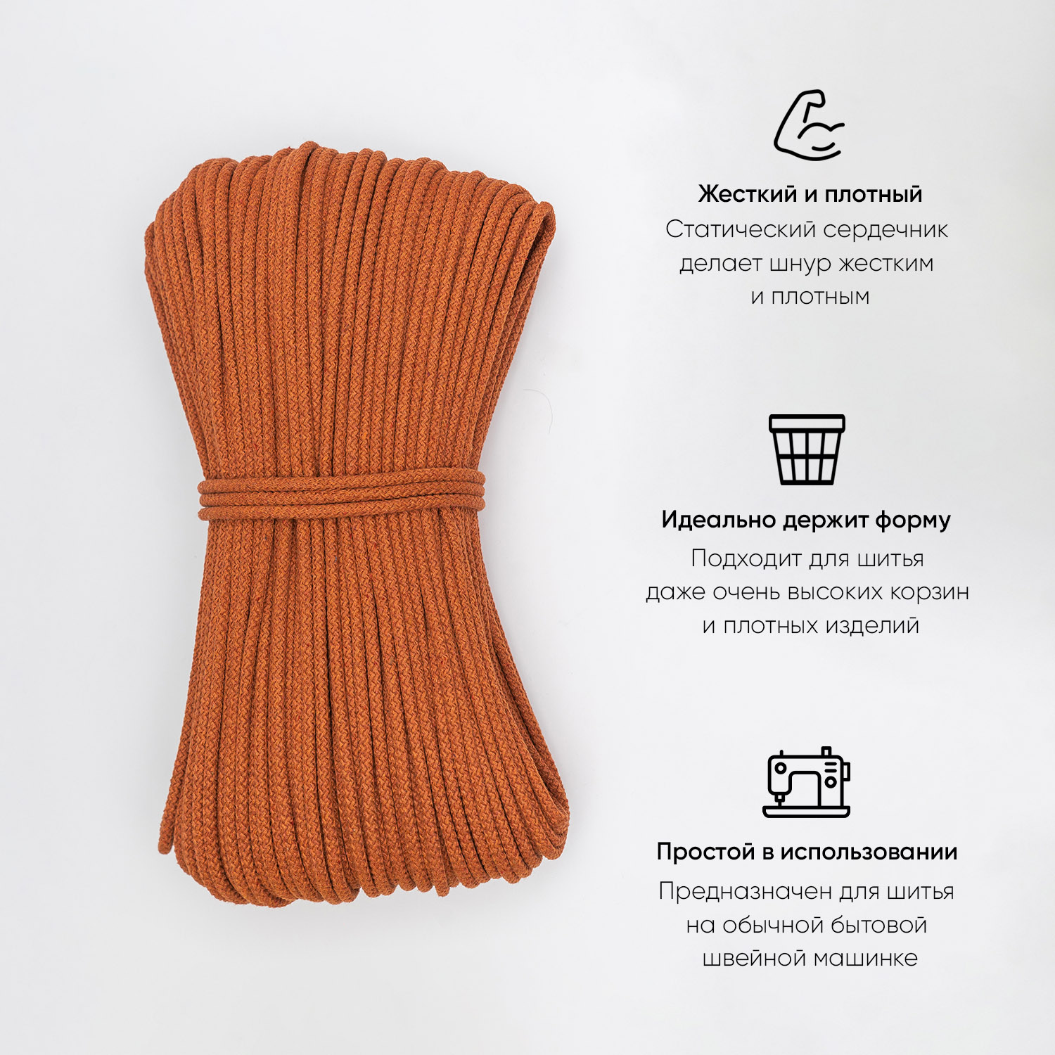 Хлопковый шнур для шитья с сердечником 5 мм/100 м, цвет Терракот