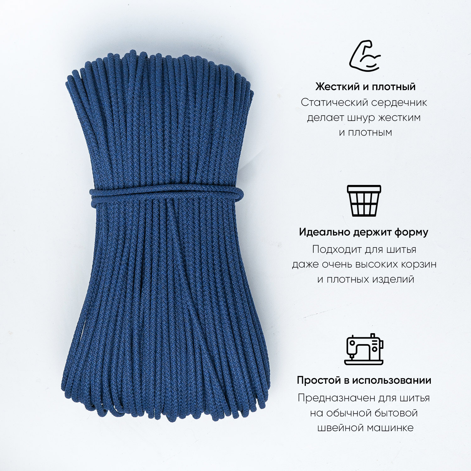 Хлопковый шнур для шитья с сердечником 5 мм/100 м, цвет Тёмно-синий