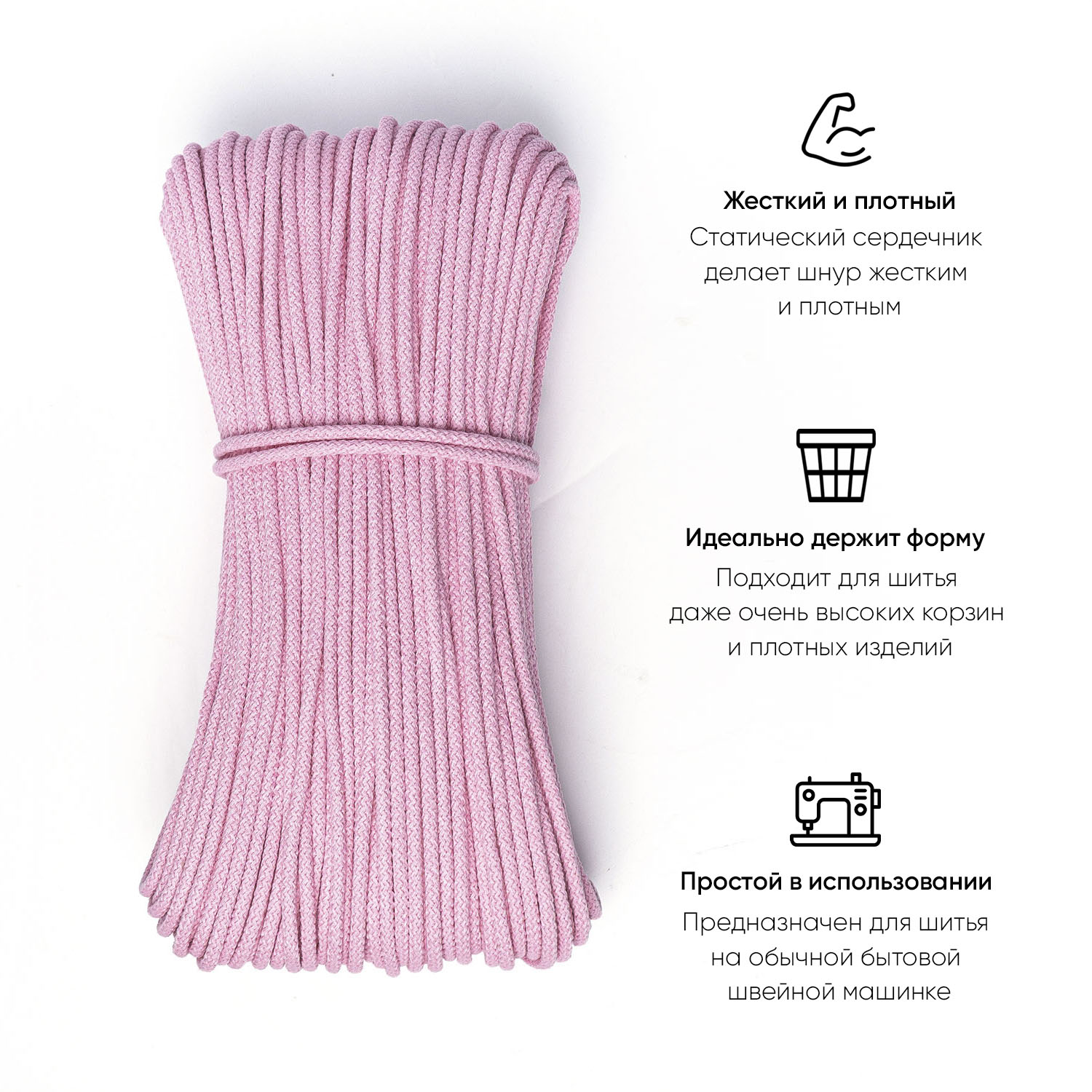 Хлопковый шнур для шитья с сердечником 5 мм/100 м, цвет Нежно-розовый