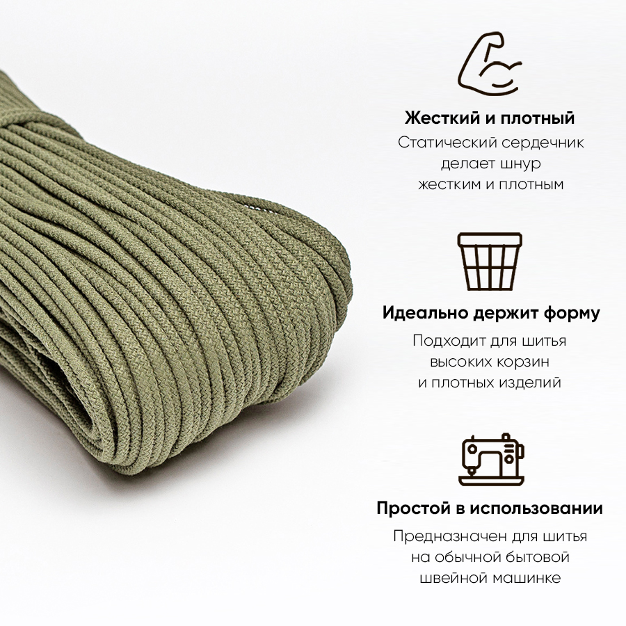 Хлопковый шнур для шитья с сердечником 5 мм/100 м, цвет Шалфей